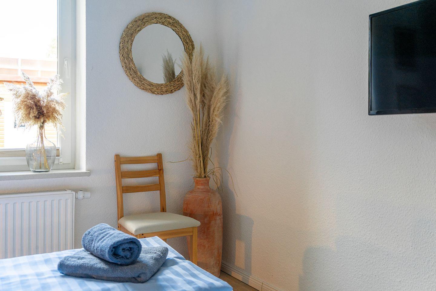 Außerdem gehört folgendes zur Ausstattung: DVD-Player, Bügelbrett und Bügeleisen und ein Wäscheständer.