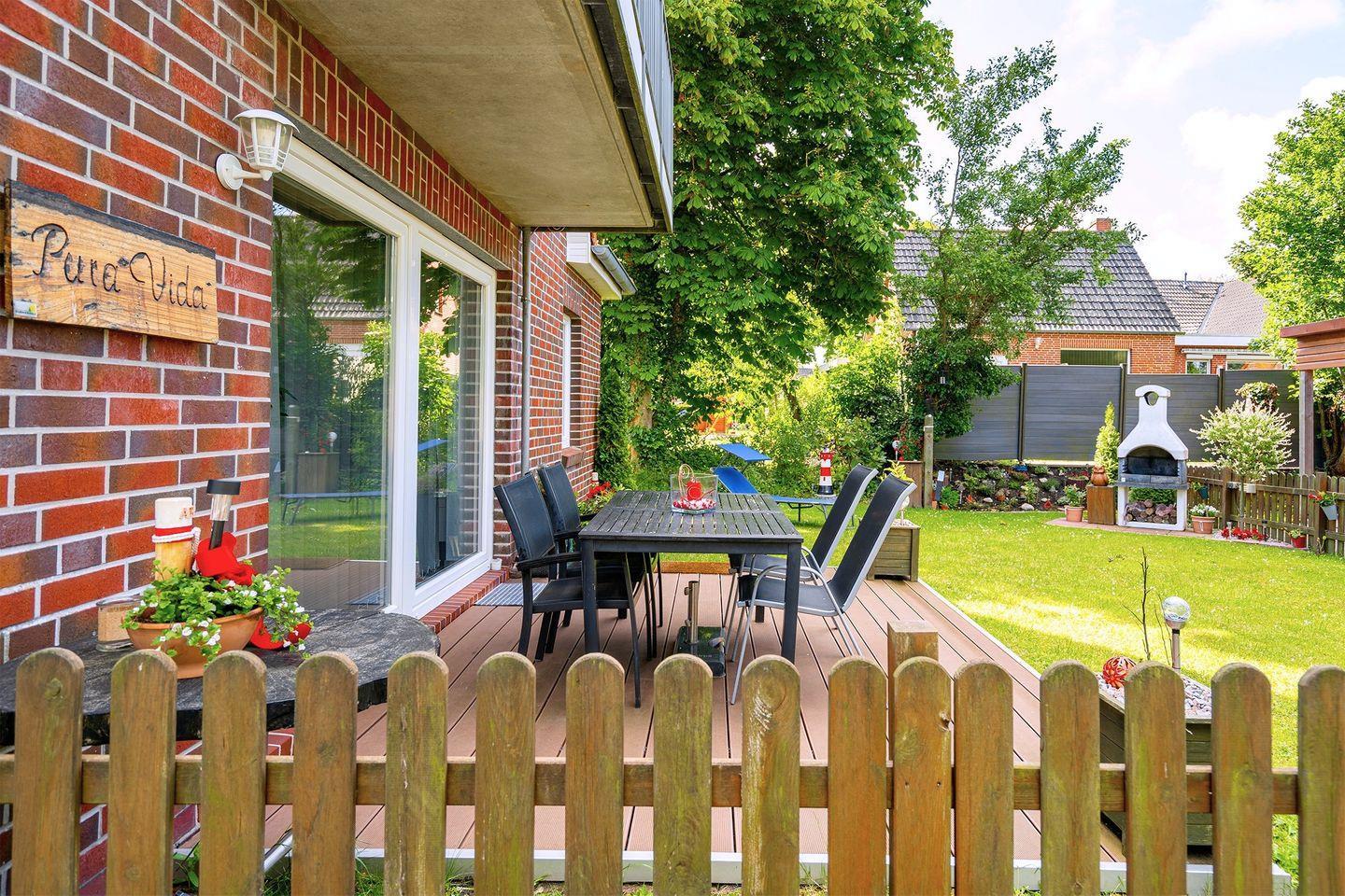 Stilvolle Erdgeschosswohnung mit großem Garten und Terrasse, nur 500 m von der Nordsee in Norddeich entfernt.