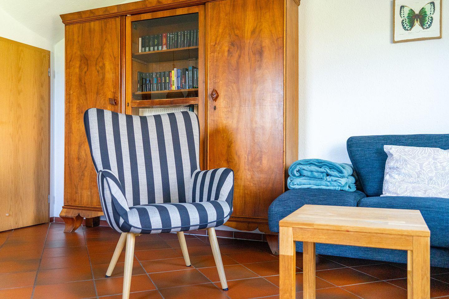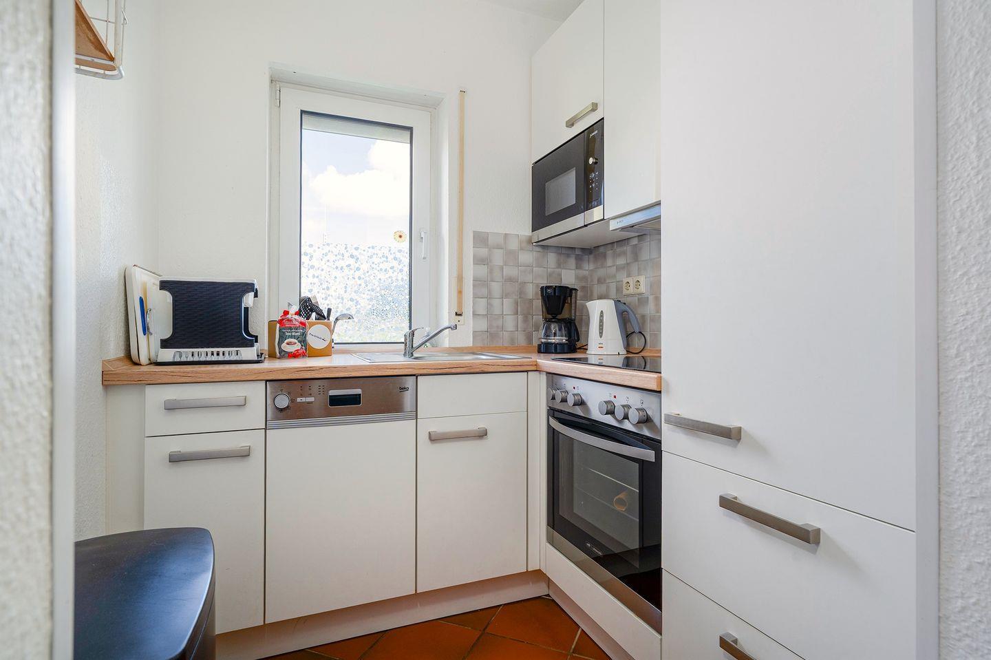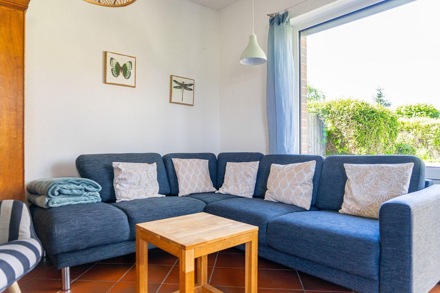 Großer Wohn-/Essbereich mit gemütlicher Sofaecke und SAT-TV mit DVD-Player. Separate voll ausgestattete kleine Küche mit z.B. Gefrierfach, Geschirrspüler, Mikrowelle, Wasserkocher, Filter-Kaffeemaschine, Ceranfeld und Backofen. Ein Hochstuhl für die kleinen Gäste ist vorhanden.