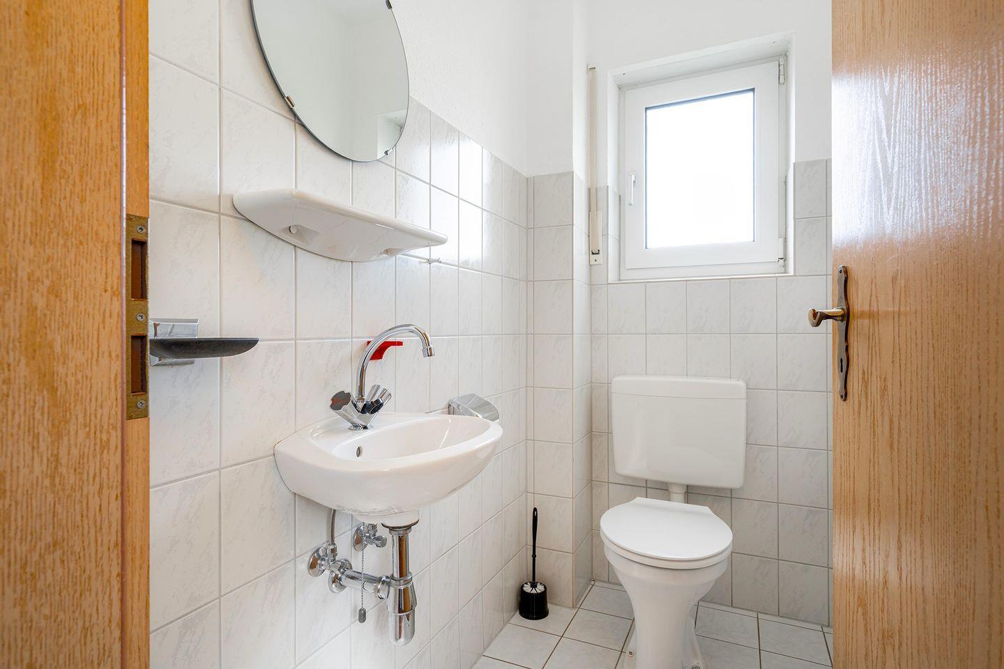 Im Erdgeschoß befindet sich weiter ein Gäste-WC sowie ein Abstellraum mit Waschmaschine.