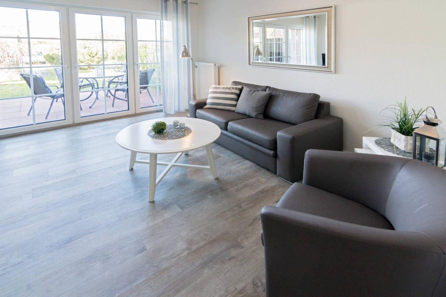 Komfortable Ferienwohnung Herzmuschel in Norddeich mit Garten, WLAN und moderner Ausstattung für erholsame Tage an der Nordsee.