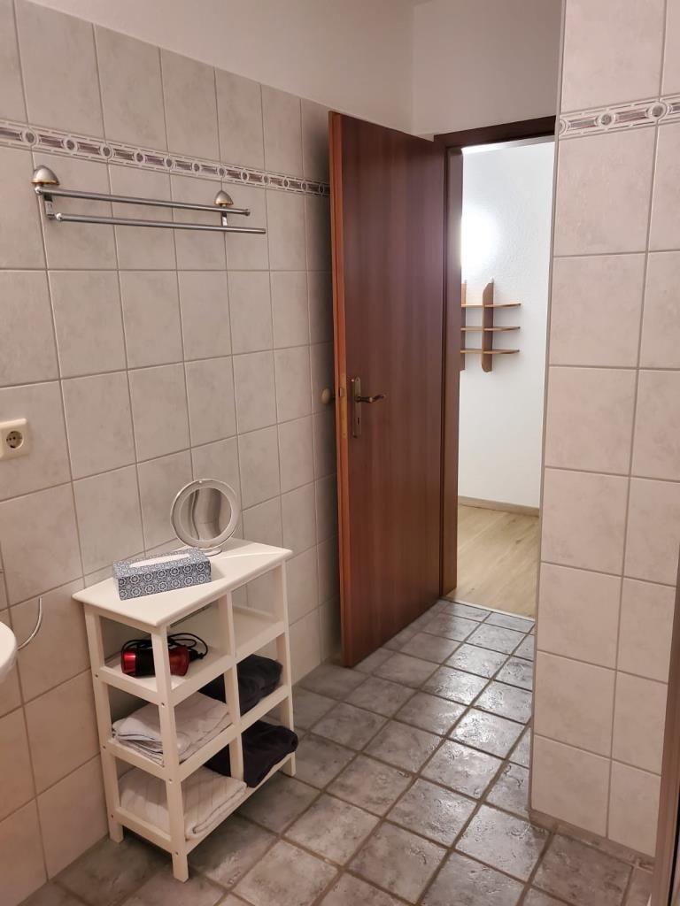 Spülmaschine) und Essecke sowie separates Badezimmer mit Dusche/WC. Vom