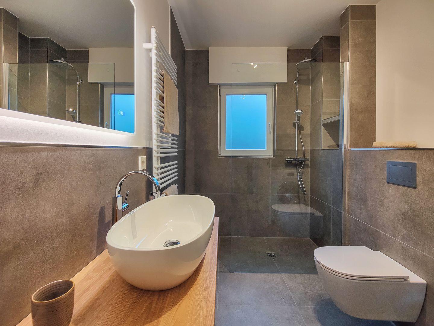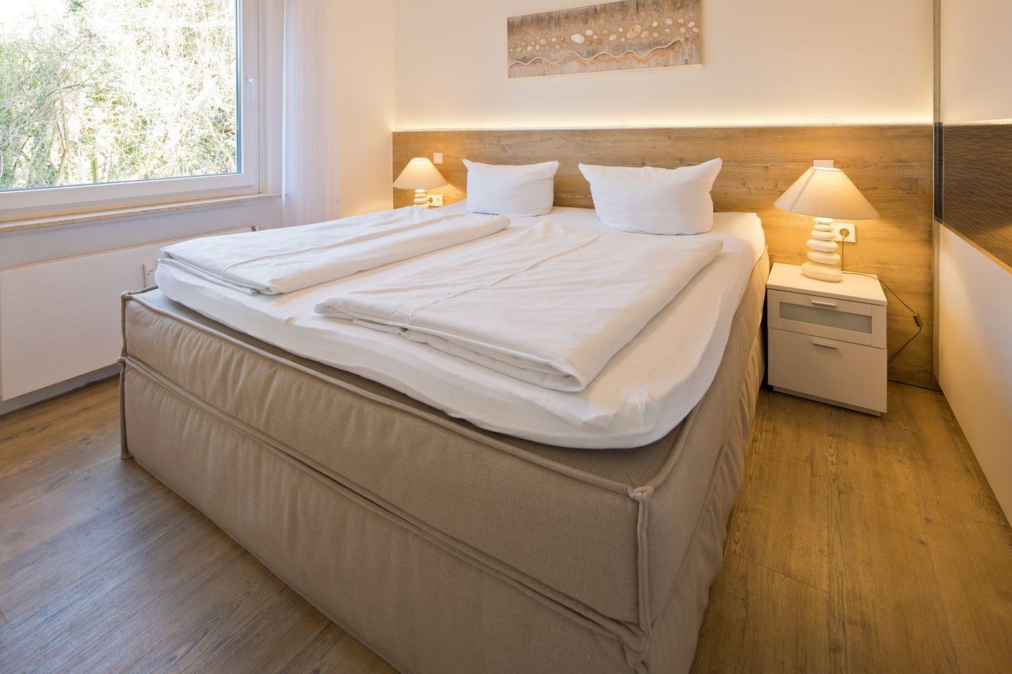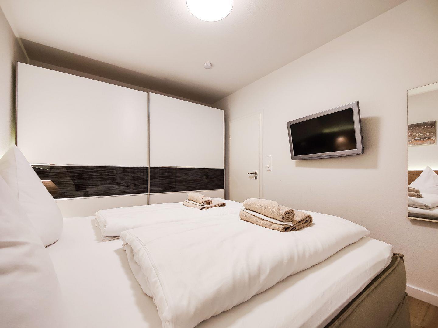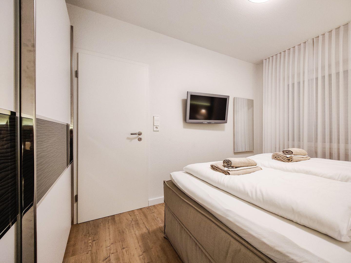 Herzlich willkommen in der neu eingerichteten Ferienwohnung im Erdgeschoss. Hier können Sie es sich mit bis zu 4 Personen gemütlich machen. Es erwartet Sie ein heller Wohnraum mit bequemer Couch, 55" Curved-Smart-TV, Radio und Essplatz. Von hier aus haben Sie Zugang auf den sonnigen Südwestbalkon. In der Küche finden Sie neben einem Backofen, Spülmaschine, Mikrowelle und Kaffeemaschine auch noch viele weitere nützliche Küchengeräte vor. Das WLAN ist schnell und kostenlos! Über den großzügigen Flur gelangen Sie in eines der behaglichen Schlafräume, ausgestattet mit einem hochwertigen Boxspringbett (180x200), einem großem Kleiderschrank und TV. Das zweite Schlafzimmer ist mit zwei Einzelbetten ausgestattet und verfügt über eine Kommode. Das neue Tageslichtbad verfügt über eine bodengleiche begehbare Dusche, Waschbecken, Handtuchheizung, WC und eine Waschmaschine. Mit individuellen Akzenten, Bildern und Ideen haben wir auch diese Wohnung mit viel Energie und Freude für Sie renoviert.