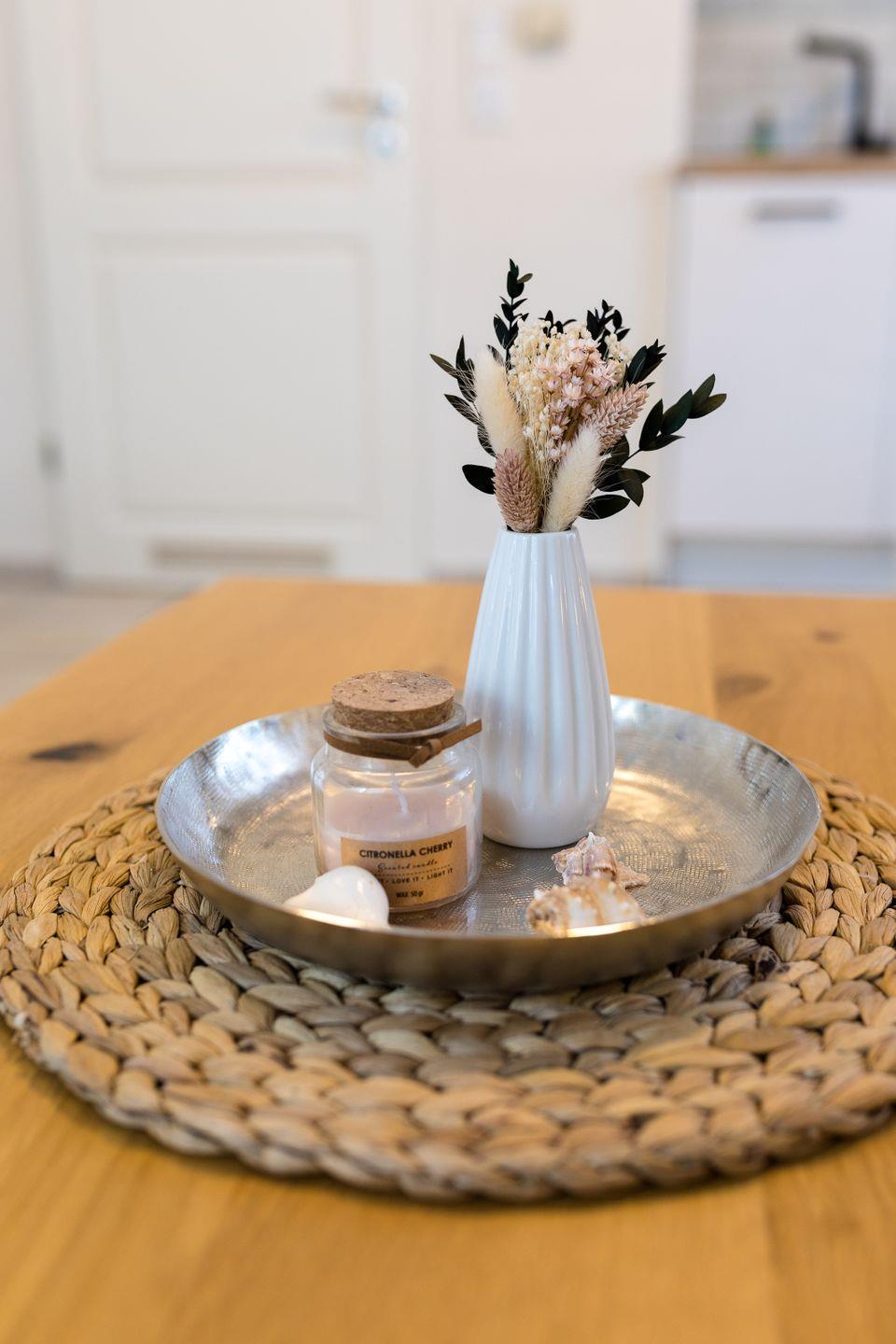 Im Zentrum der Unterkunft steht der geräumige Wohnraum mit kombiniertem Koch- und Essbereich. Bis zu vier Personen können hier gemeinsam kochen, speisen und gemütliche Abende genießen. Dazu finden Sie hier alles, was Sie benötigen.