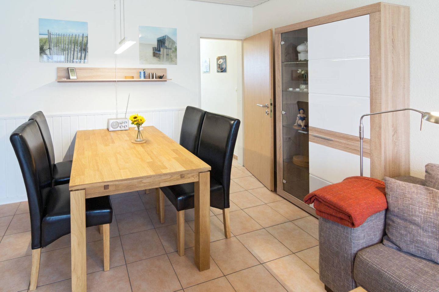 Er verfügt über einen großzügigen Wohn/Essbereich mit Zugang zur Terrasse. Die Küche ist mit allen ausgestattet, was Sie für ein perfektes Nordsee-Dinner brauchen.