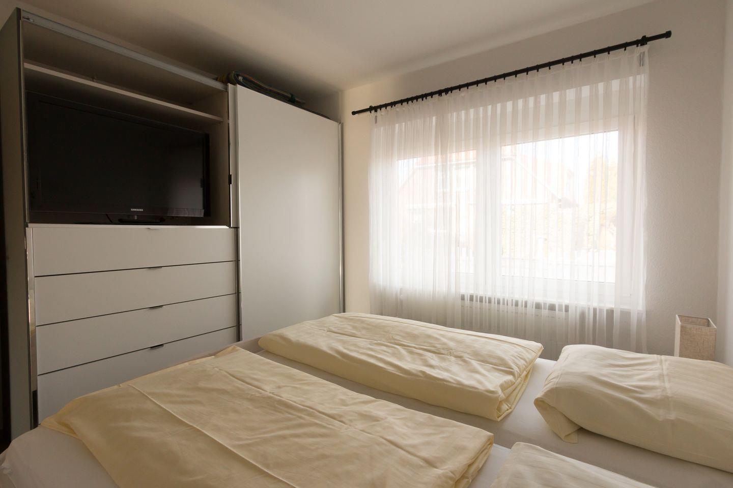 Das Schlafzimmer verfügt über ein Doppelbett, einen großen 40"-Fernseher und Apps wie Netflix, Amazon Prime Video sowie einen schönen Kleiderschrank mit viel Stauraum. Für die dritte und vierte Person ist im Wohnbereich eine gemütliche Doppelschlafcouch vorgesehen, welche sich im Handumdrehen ausziehen lässt. Für die Nacht können das Wohnzimmer (elektrisch) und das Schlafzimmer mit Hilfe von Rollläden komplett verdunkelt werden. Des Weiteren stehen ein Bügeleisen samt Bügelbrett, ein Wäscheständer und ein Haartrockner zur Verfügung.