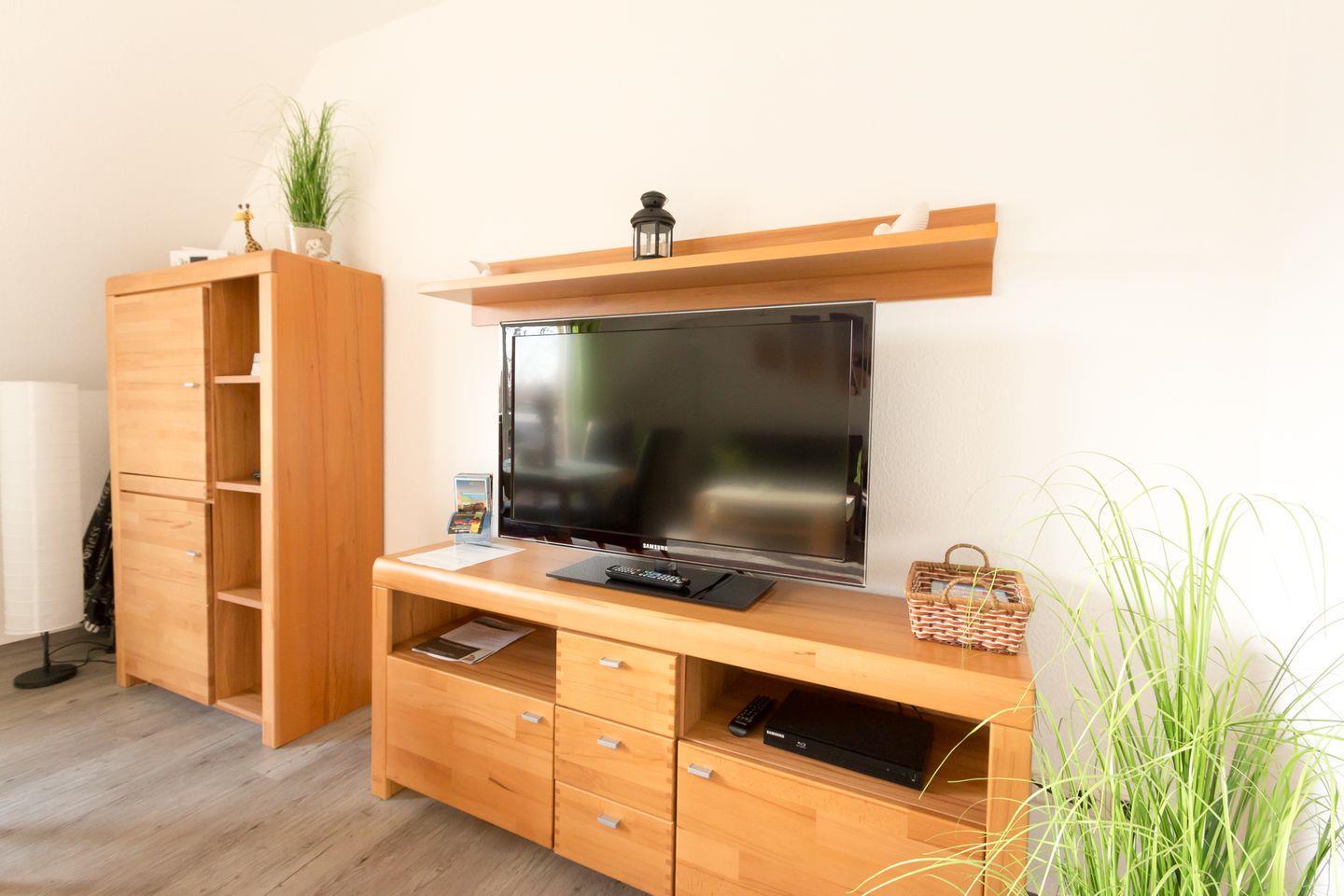 Die Ferienwohnung ist hochwertig ausgestattet und bietet Ihnen im Wohnzimmer einen großen 40"-Fernseher. Zudem stehen ein Internetradio und ein Blu-Ray-Player samt kleiner, aktueller Filmsammlung für Sie bereit. Die Küche ist mit Mikrowelle, Ceran-Kochfeld, Backofen, Kühlschrank inkl. Gefrierfach, Wasserkocher, Toaster, Eierkocher sowie ausreichend Koch- und Essgeschirr sehr gut ausgestattet. Außerdem ist nicht nur eine Filter-Kaffeemaschine vorhanden, sondern auch ein Tassimo-Gerät.