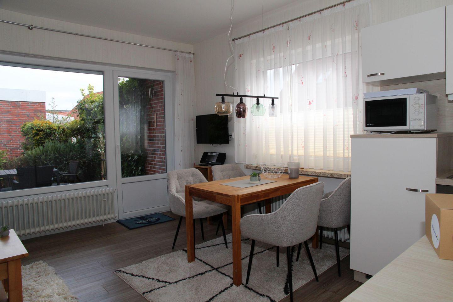 Gemütliche, hundefreundliche Ferienwohnung mit Terrasse in ruhiger Lage in Norddeich, nur wenige Gehminuten vom Strand entfernt.