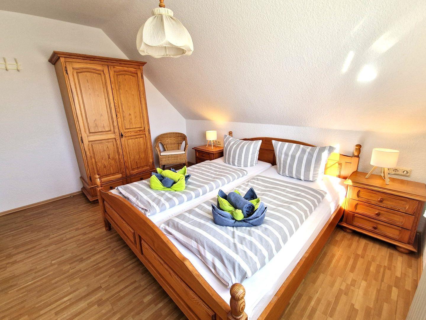 Weiter befinden sich in der Wohnung 2 Schlafzimmer, eins mit einem Doppelbett und ein weiteres mit 2 Einzelbetten.