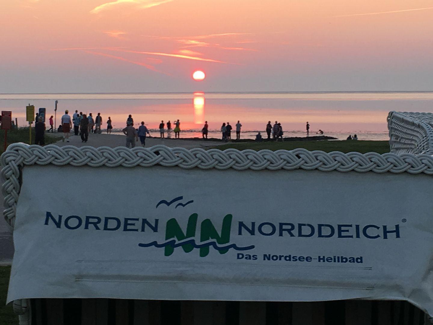 Die Ferienwohnung befindet sich in Norddeich, einem beliebten Küstenort an der ostfriesischen Nordsee. Zentral gelegen, sind der breite Sandstrand, die Hafenpromenade und zahlreiche Freizeitangebote wie die Seehundstation, das Erlebnisbad Ocean Wave und Minigolfplätze bequem zu Fuß erreichbar. Der Fährhafen mit Verbindungen zu den Inseln Norderney und Juist liegt in unmittelbarer Nähe. Die Umgebung bietet zudem viele Rad- und Wanderwege entlang der Deiche, ideal für Ausflüge in die Natur. Ein perfekter Standort, um die Nordsee und Ostfriesland in vollen Zügen zu genießen.