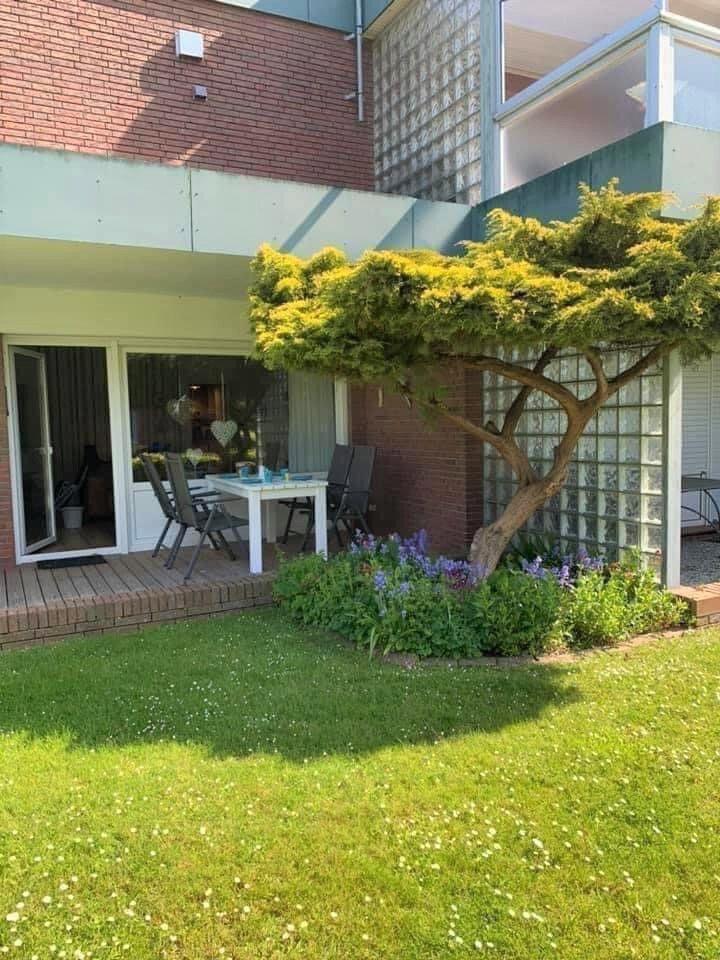Gemütliche Erdgeschoss-Ferienwohnung mit Terrasse und Gartenblick, nur 350 Meter vom Strand in Norddeich entfernt.
