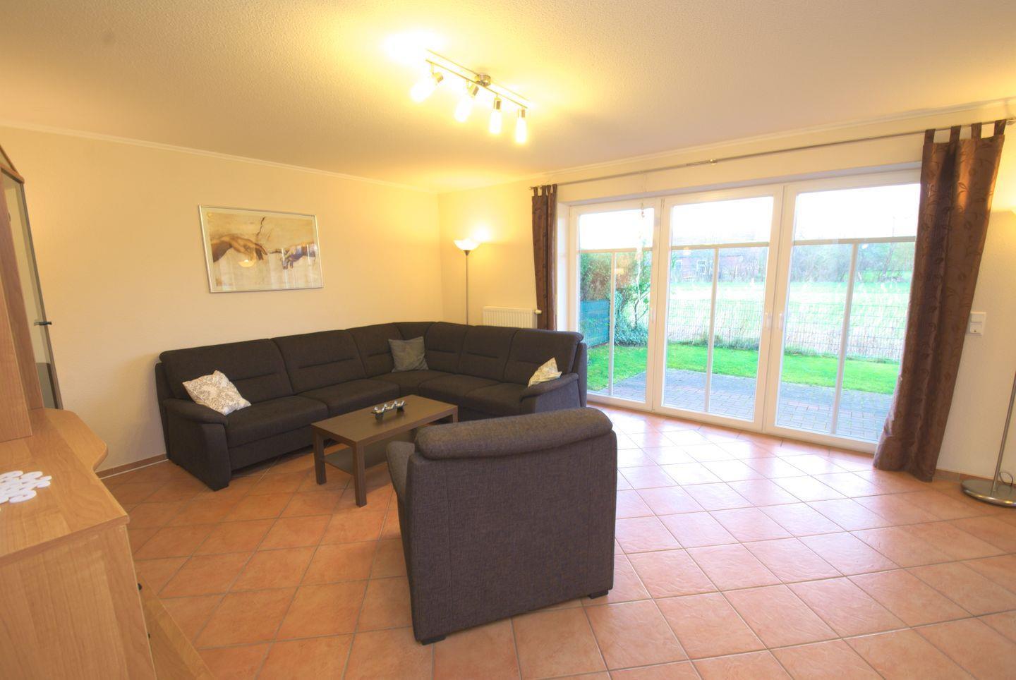 Die großzügige Ferienwohnung mit 93 m² bietet Platz für bis zu 4 Personen. Sie befindet sich im Erdgeschoss und ist ideal für Senioren oder Menschen mit einer benötigten Barrierefreiheit, da nur eine Stufe an der Haus- und Terrassentür zu überwinden ist. Die Wohnung umfasst zwei große Schlafzimmer, eines mit Boxspring-Doppelbett (1,80 x 2,00 m) und eines mit zwei Einzelbetten (1,40 x 2,00 m und 0,90 x 2,00 m). Das helle Wohnzimmer bietet eine gemütliche Couchecke mit Deichblick, SAT-TV und DVD-Player, sowie einen angrenzenden Essbereich mit offener, gut ausgestatteter Küche. Zur Ausstattung gehören unter anderem Cerankochfeld, Kühlschrank mit Gefrierfach, Backofen, Spülmaschine und Mikrowelle. Das Badezimmer ist mit einer großzügigen, barrierefreien Dusche und einem separaten Gäste-WC mit Waschmaschine ausgestattet. Die Wohnung ist komplett gefliest, mit Fußbodenheizung und zusätzlich Heizkörpern. Auf der Terrasse stehen Gartenmöbel bereit, und der Garten ist vollständig eingezäunt und verfügt über ein Gartenhaus mit Steckdose. Ein Parkplatz ist direkt vor der Wohnung verfügbar. Hunde sind herzlich willkommen.