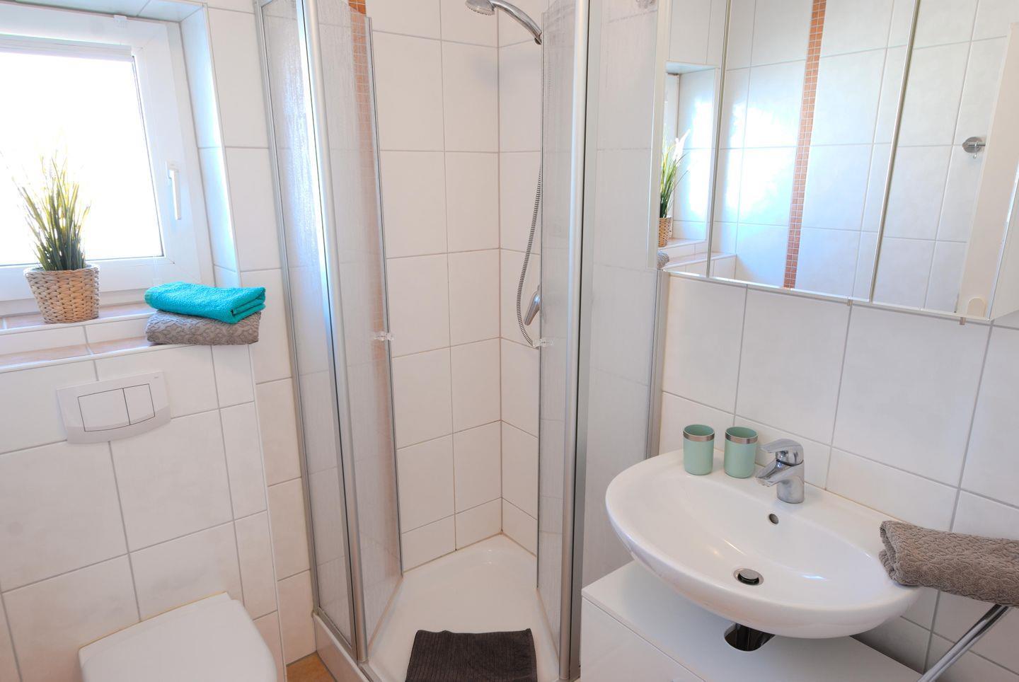 Die Allergiker freundliche Wohnung im Obergeschoss bietet auf 50 m² Platz für bis zu 4 Personen. Sie verfügt über 2 Schlafzimmer, eines mit einem Boxspringbett (180 x 200 cm). Das Wohnzimmer ist mit SAT-TV ausgestattet, und die voll ausgestattete Küche bietet ein Ceran-Kochfeld, Backofen, Spülmaschine, Mikrowelle und Kaffeemaschine. Ein Balkon mit Tisch und 4 Stühlen lädt zum Entspannen ein. Ein PKW-Stellplatz und ein Schuppen sind ebenfalls vorhanden.