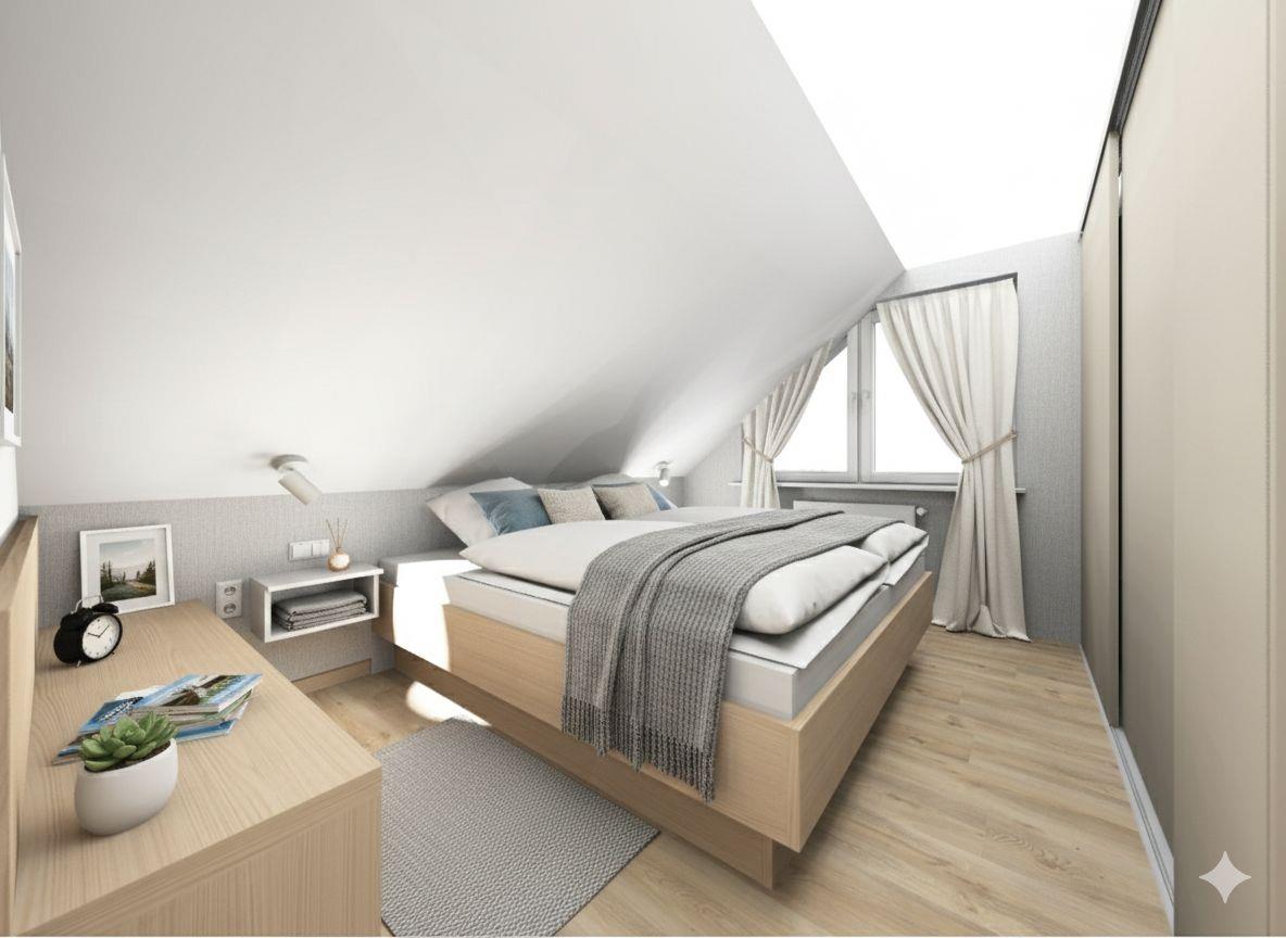 - Ausgebauter Spitzboden mit zwei weiteren Schlafplätzen, erreichbar über eine platzsparende Treppe
