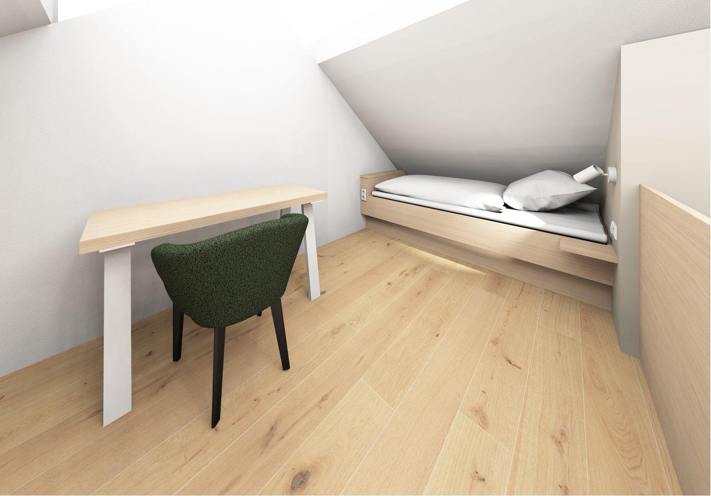 - Ausgebauter Spitzboden mit zwei weiteren Schlafplätzen, erreichbar über eine platzsparende Treppe