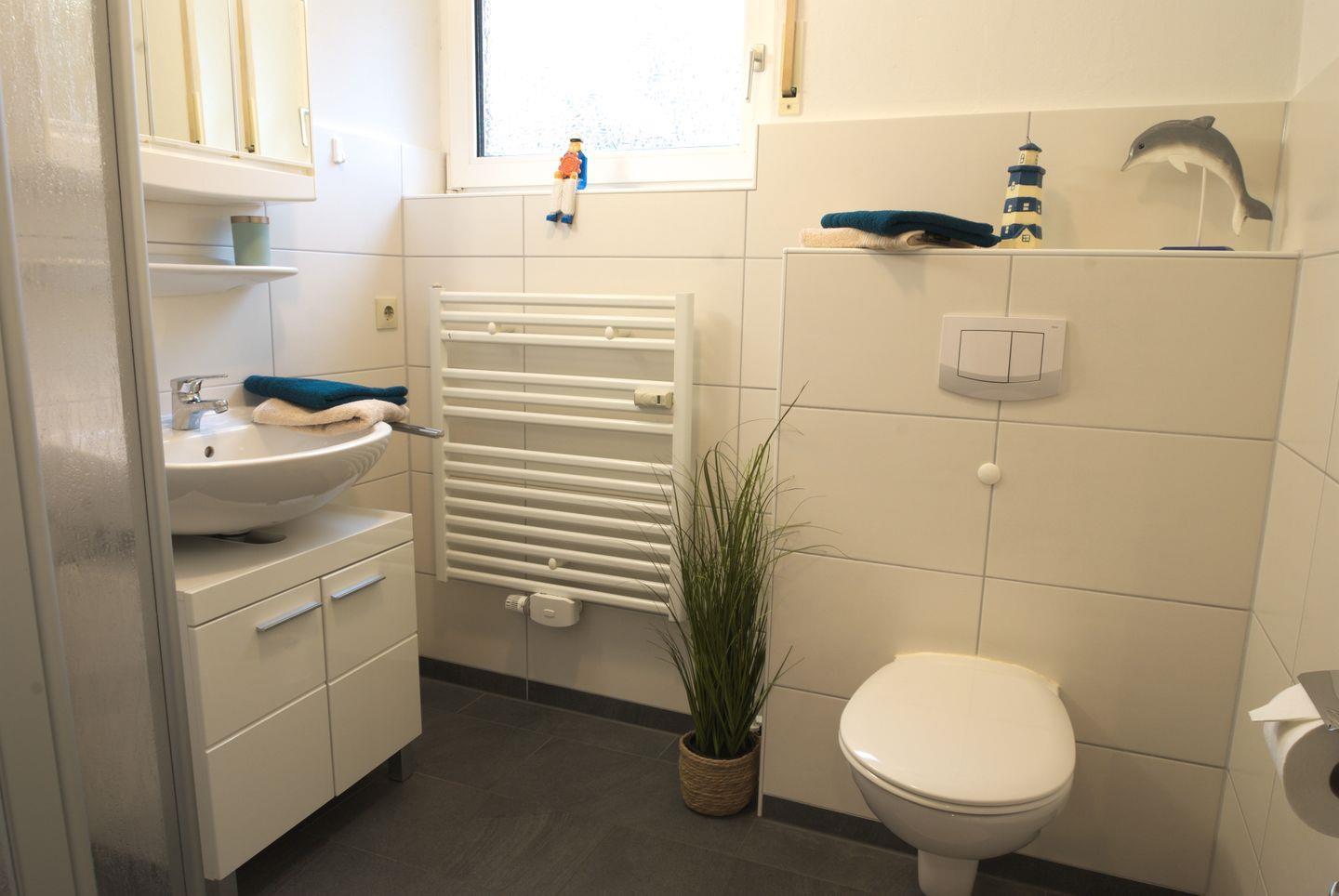 Ein besonderes Highlight ist das geschmackvoll gestaltete Badezimmer mit einer bodengleichen Glasdusche, die modernen Komfort bietet.