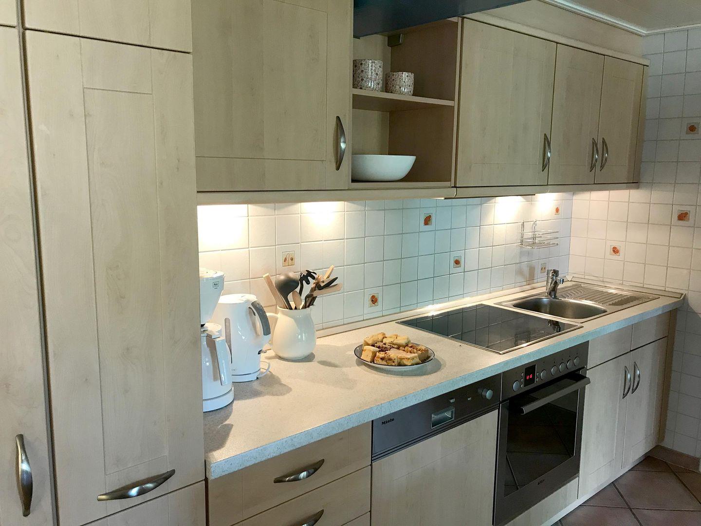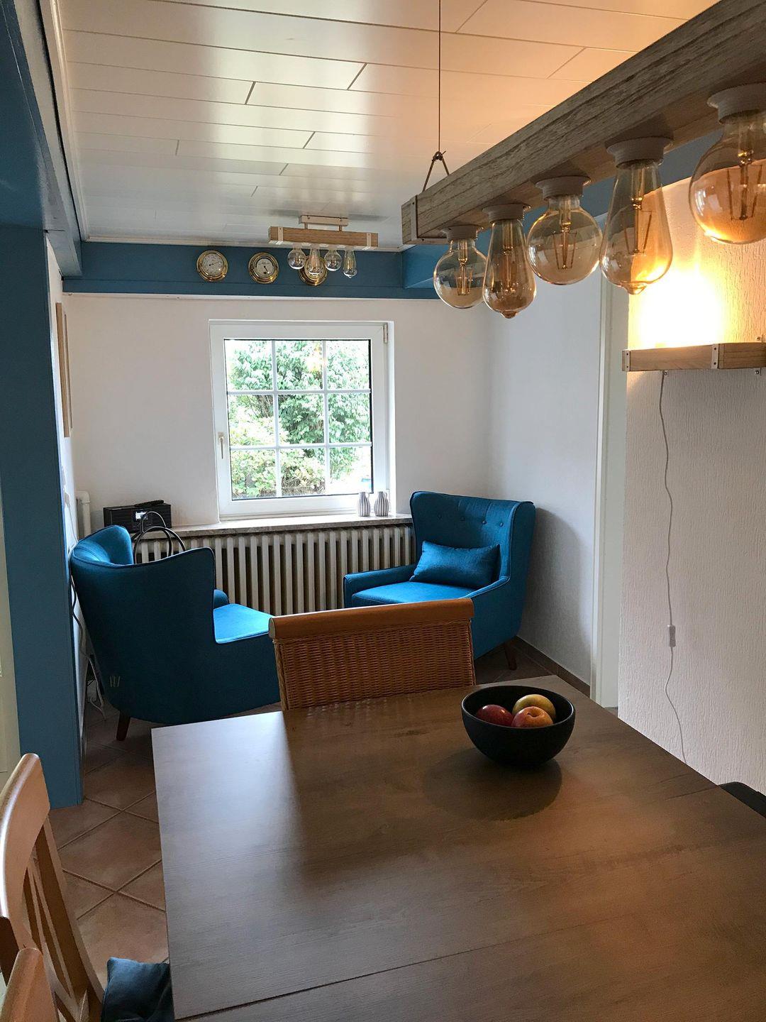 Die Ferienwohnung verfügt über 1 Wohnraum mit WLAN und Sat-TV und offener Küche, 2 Schlafzimmer, 1 Badezimmer mit Dusche und WC, Nord-Terrasse mit Gartenmöbeln und Strandkorb (April bis Oktober).