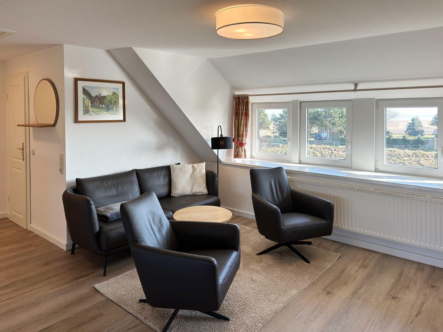 Die Ferienwohnung Bräätlun 3 in Norddorf auf Amrum bietet komfortable 3 Zimmer für bis zu 4 Personen mit Garten und Strandkorb.