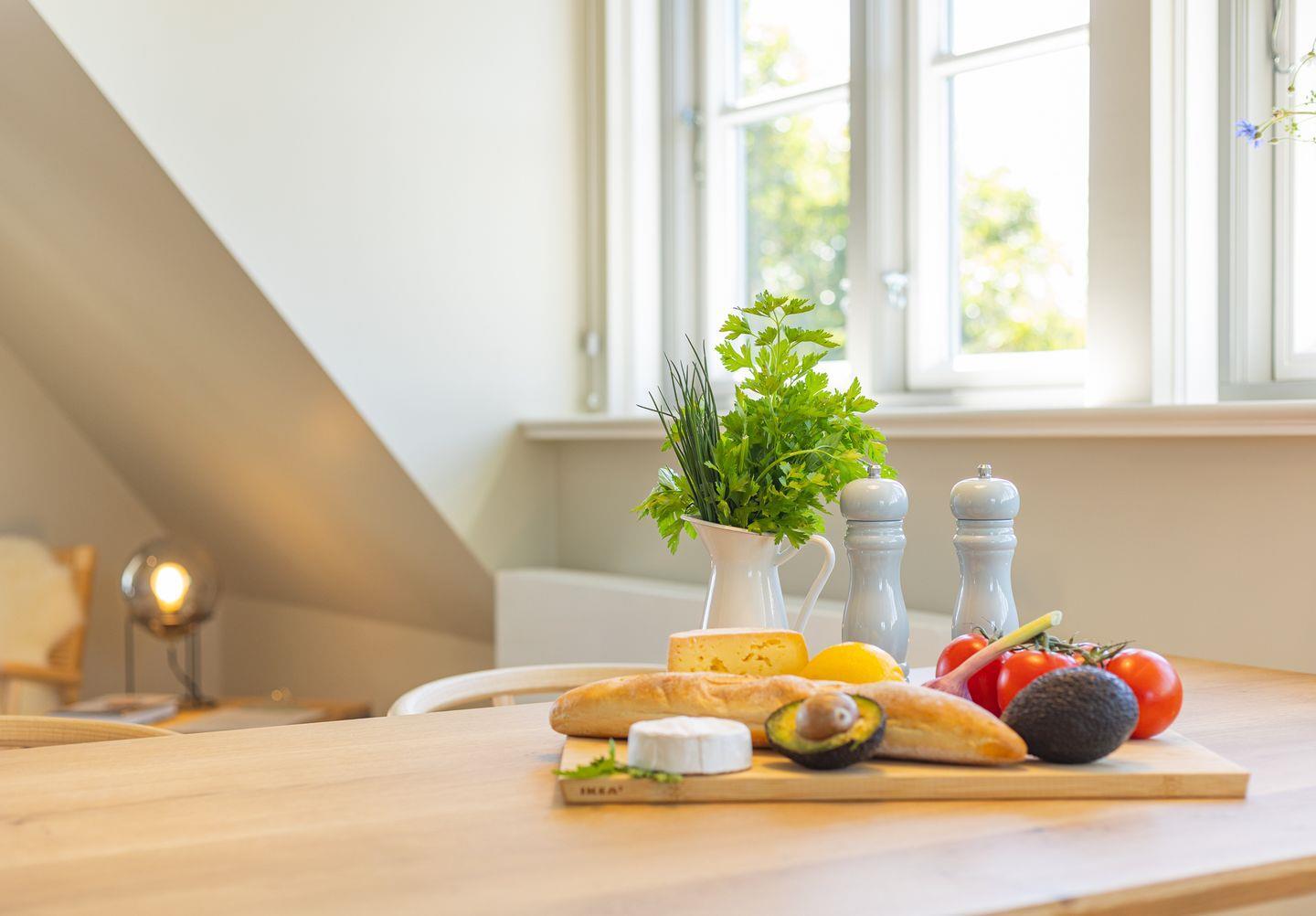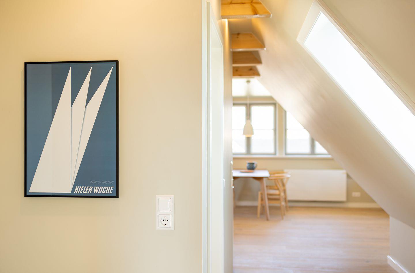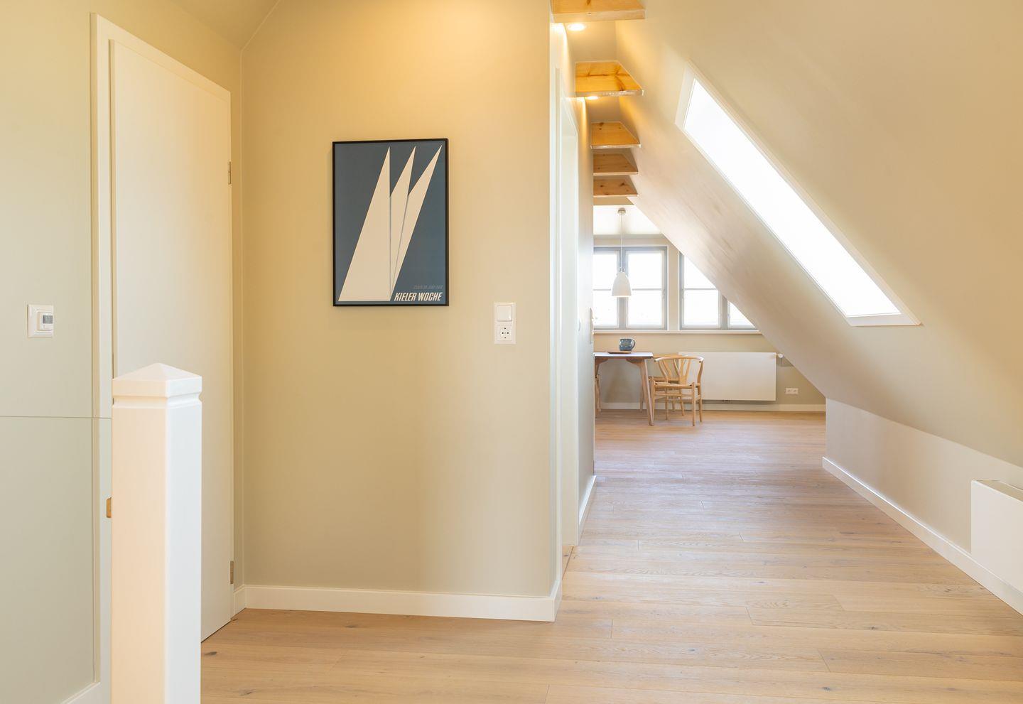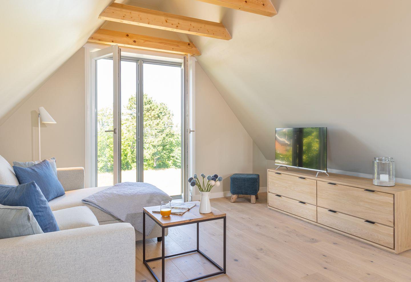 Diese 84qm² große Wohnung 1 liegt im zweiten Obergeschoß des Hauses. Sie ist hell und geschmackvoll eingerichtet und wird Ihnen vom ersten Tag an Erholung bieten. Diese elegant, im nordischen Stil gestaltete Ferienwohnung ist ein optimaler Ausgangspunkt für Ihre Aktivitäten. Sie ist mit ihren skandinavischen und hochwertigen Möbeln die Wohlfühloase Ihres Inselurlaubes. Hier erwartet Sie ein Schlafzimmer mit einem 1,60m großem Boxspringbett. Im Wohn- und Essbereich ist eine Küche integriert. Die Küche ist mit allen Utensilien ausgestattet. Der Wohnbereich mit TV, einem Ecksofa und zwei Sesseln lädt zu erholsamen Stunden ein.