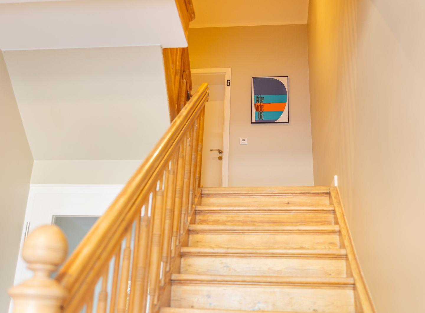 Diese 43qm² große Wohnung 3 liegt im ersten Obergeschoß des Hauses. Sie ist hell und geschmackvoll eingerichtet und wird Ihnen vom ersten Tag an Erholung bieten. Diese elegant, im nordischen Stil gestaltete Ferienwohnung ist ein optimaler Ausgangspunkt für Ihre Aktivitäten. Sie ist mit ihren skandinavischen und hochwertigen Möbeln die Wohlfühloase Ihrer Amrumzeit. Hier erwartet Sie ein Schlafzimmer mit einem 1,60m großem Boxspringbett. Im Wohn- und Essbereich ist eine Küche integriert. Die Küche ist mit allen Utensilien ausgestattet. Der Wohnbereich mit TV und zwei Sesseln lädt zu erholsamen Stunden ein.