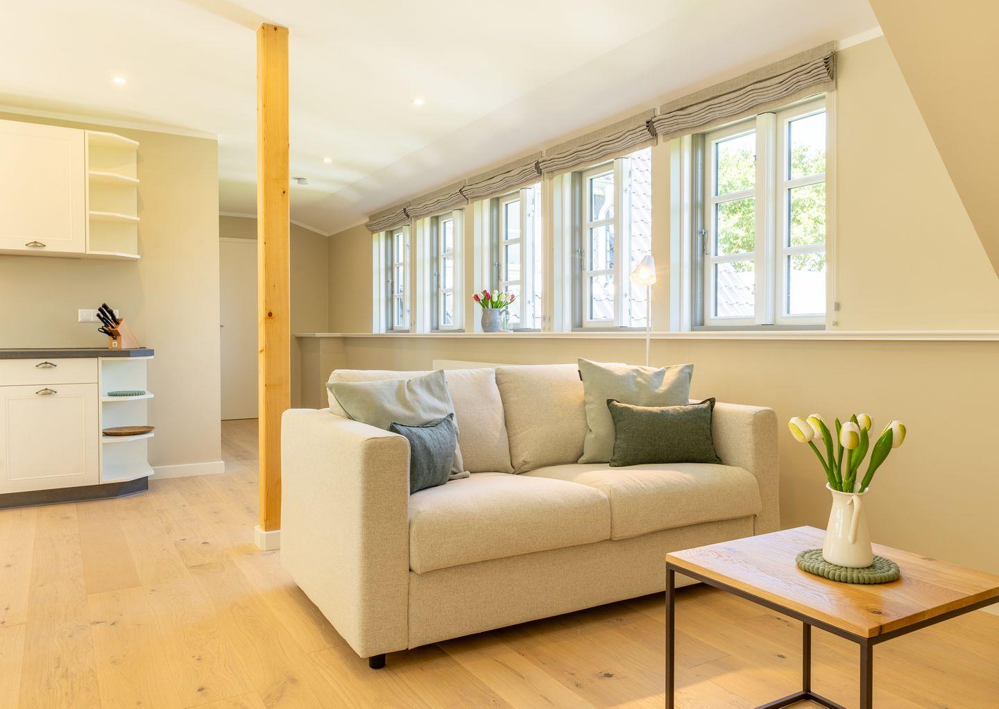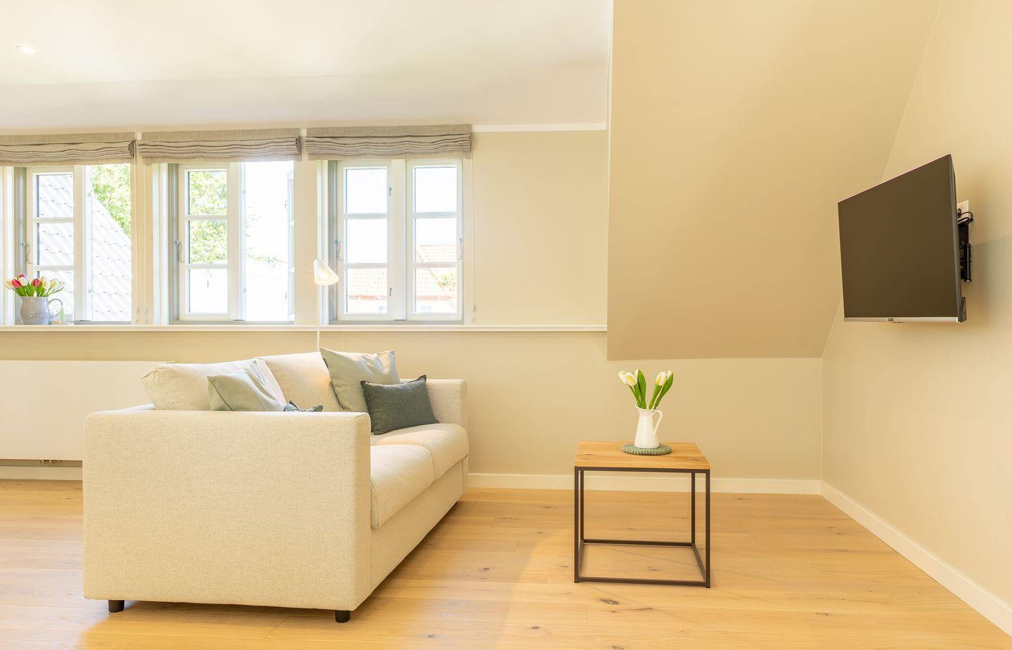 Moderne, stilvolle Wohnung im Herzen von Norddorf auf Amrum mit skandinavischem Flair und Fitnessstudiozugang.