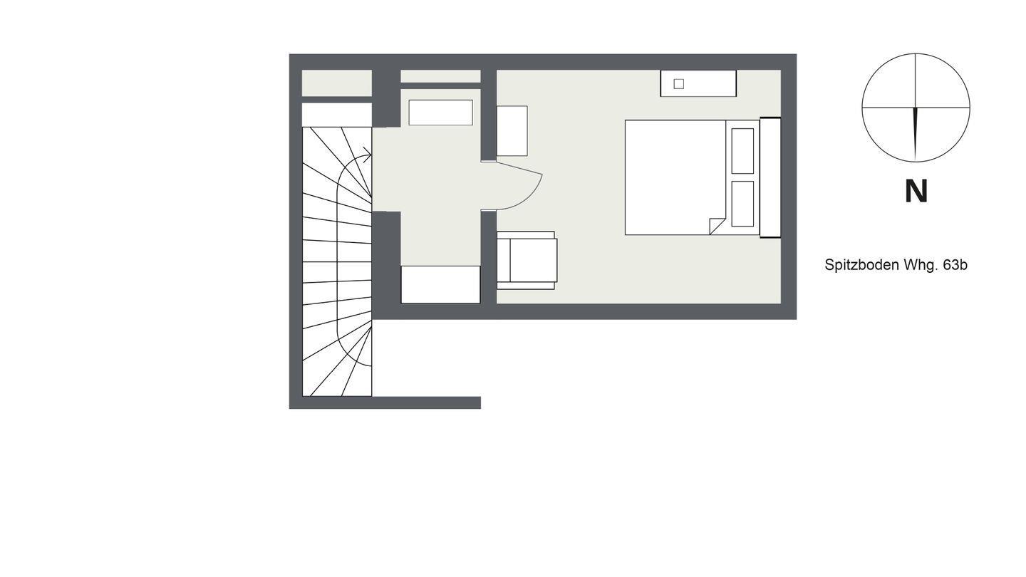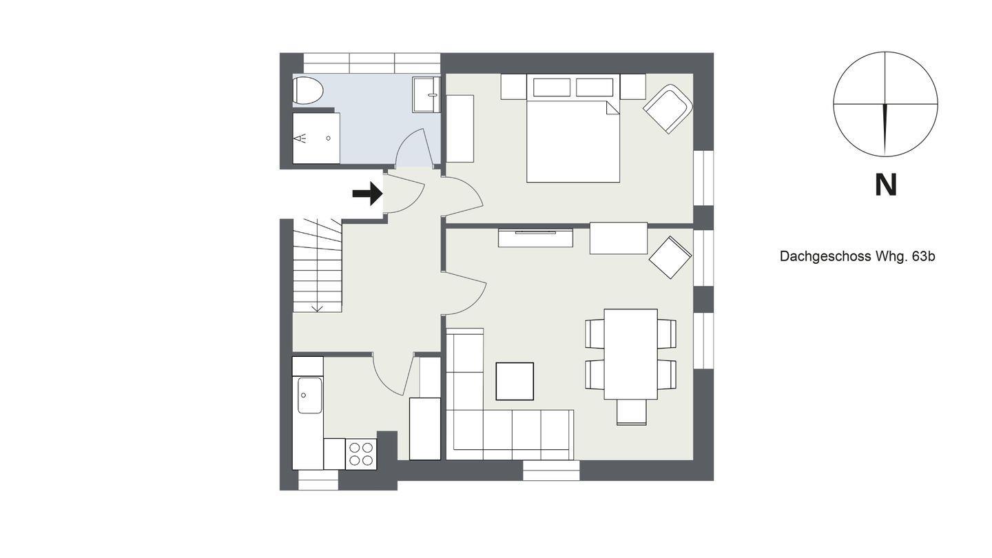 Wohn-/Esszimmer, Küche, Duschbad mit WC, 1 Doppelschlafzimmer sowie 1 Doppelschlafzimmer im Dachgeschoss.
