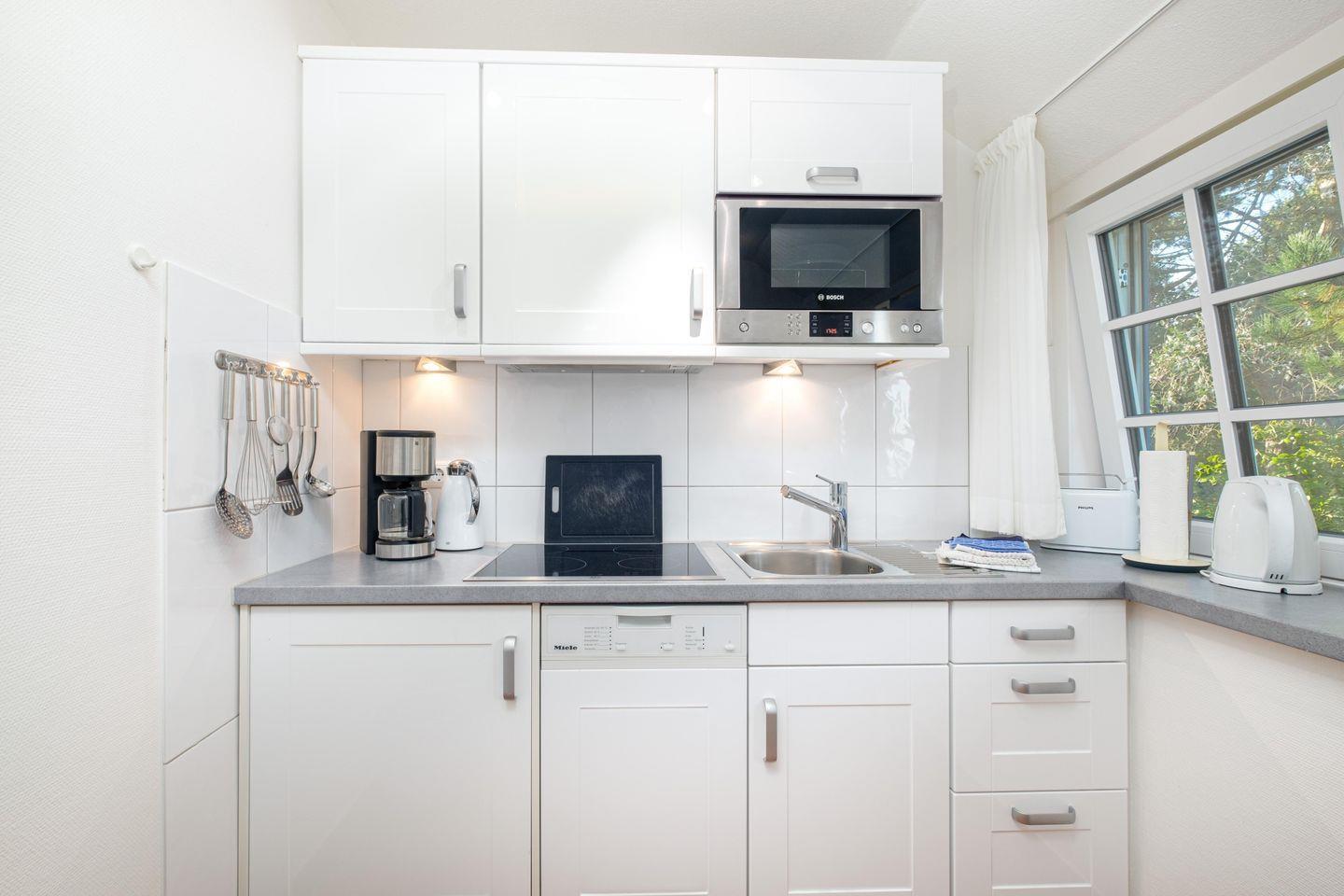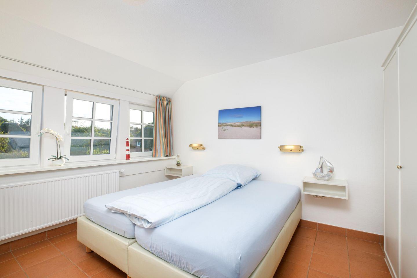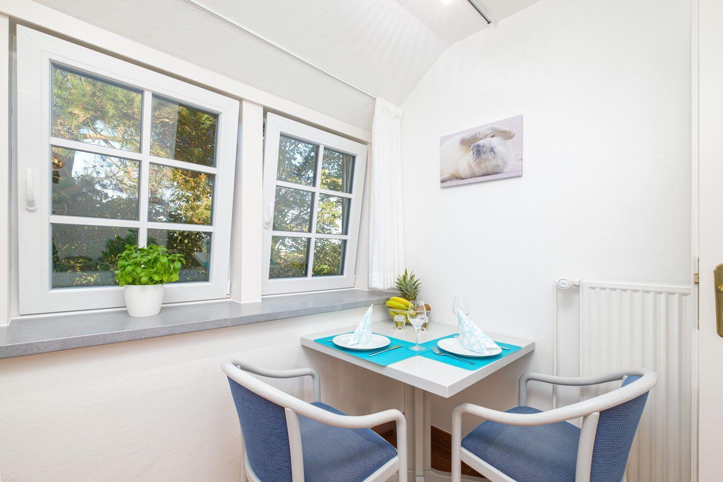 Direkt unter dem Reetdach schlafen Sie hier geborgen in einem kombinierten Wohn-Schlafbereich mit gemütlichem Doppelbett. Von dort haben Sie einen seitlichen Blick auf die Wattseite. Die Wohnung ist ca. 25?m² groß und verfügt über eine voll ausgestattete Küche mit Essbereich.