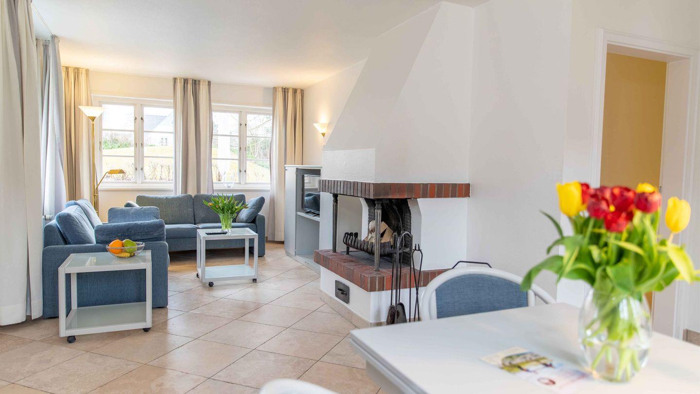 Gemütliche Erdgeschosswohnung mit Terrasse und Kamin in Norddorf, ideal für Familien und Naturliebhaber.