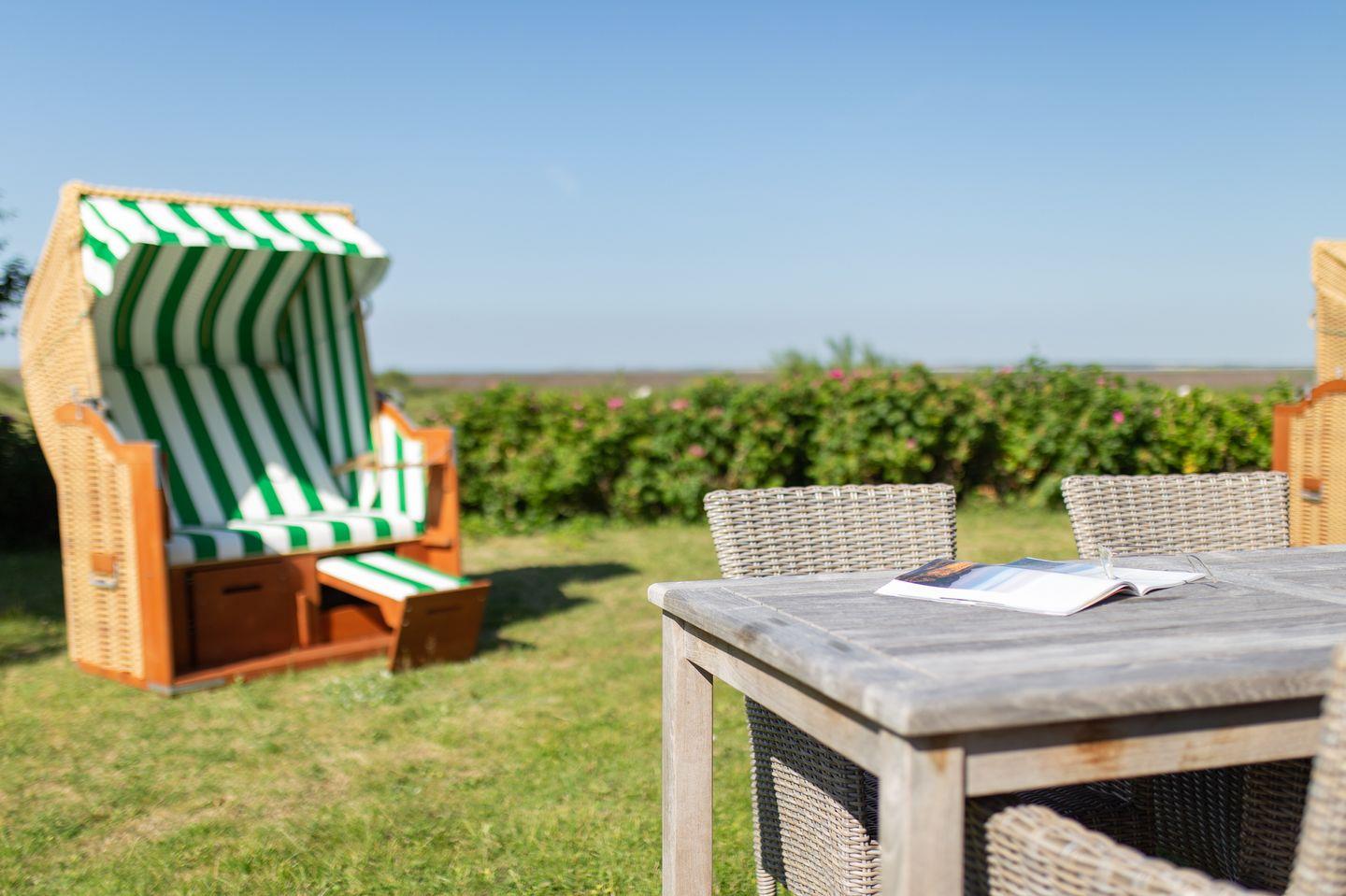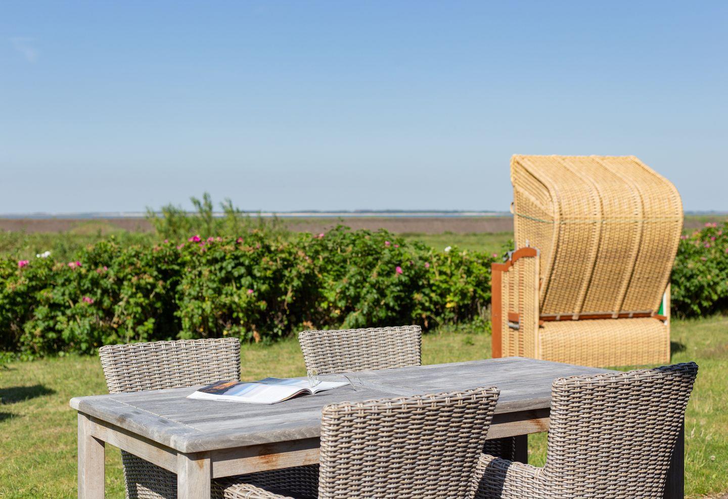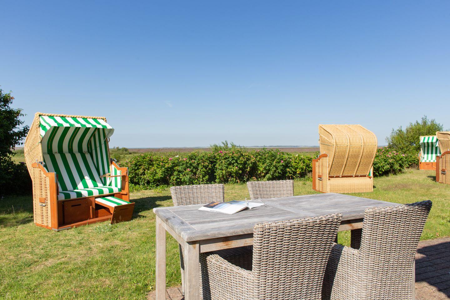 Die große Wohnung Seeschwalbe im Haus Waasluuper liegt direkt an der Norddorfer Marsch, ganz im Norden der Insel. Hier genießen Sie aus der Wohnung und im Garten den freien Blick auf das nordfriesische Wattenmeer bis zur Amrumer Odde. Die Wohnung bietet mit ihren 4 Schlafgelegenheiten ausreichend Platz für Familien. Von hier aus starten Sie direkt in die wunderschöne Natur der Insel und haben es nicht weit bis zum Norddorfer Strand. Die Gartenbereiche um das Haus Waasluuper runden das friesische Ambiente am Reetdachhaus ab und bieten viel Platz auf dem großzügigen Grundstück an. Die Wohnung Seeschwalbe profitiert durch ihre äußere Lage am Haus von einem eigenen Gartenbereich.