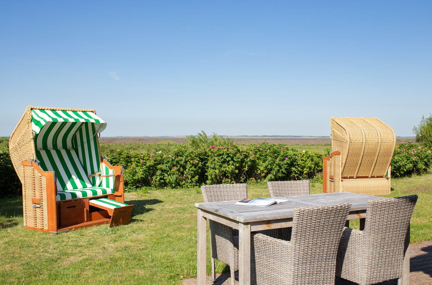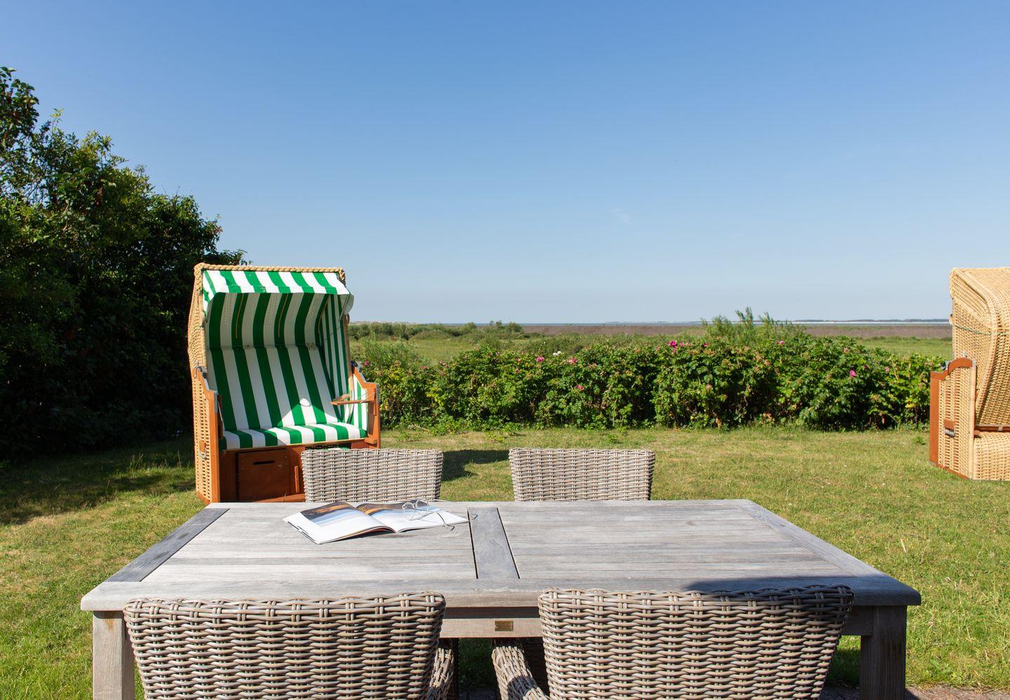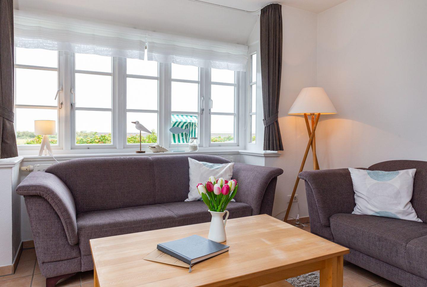 Die Ferienwohnung Seeschwalbe bietet über drei Ebenen Meerblick und direkten Zugang zur Norddorfer Natur und Strand.