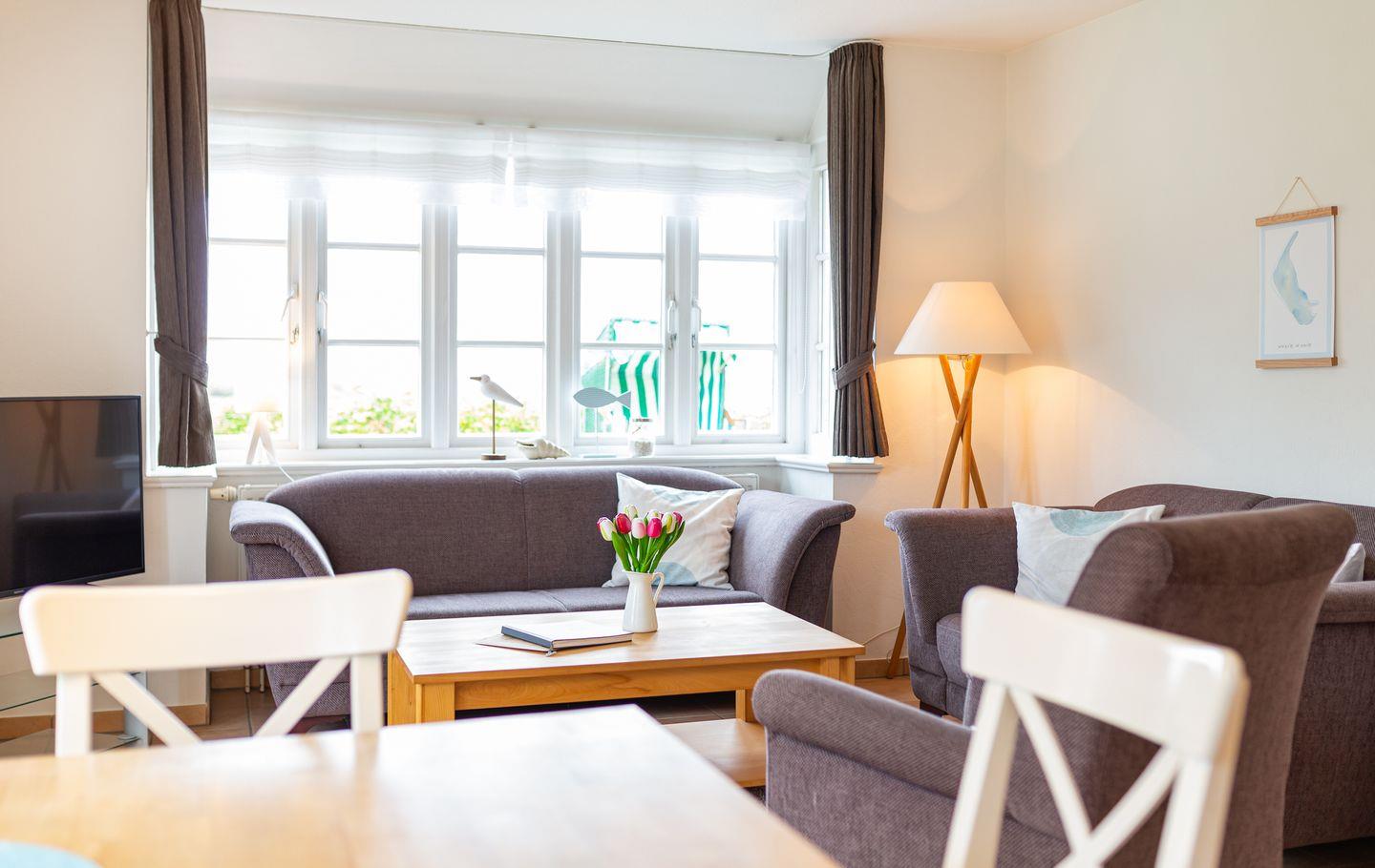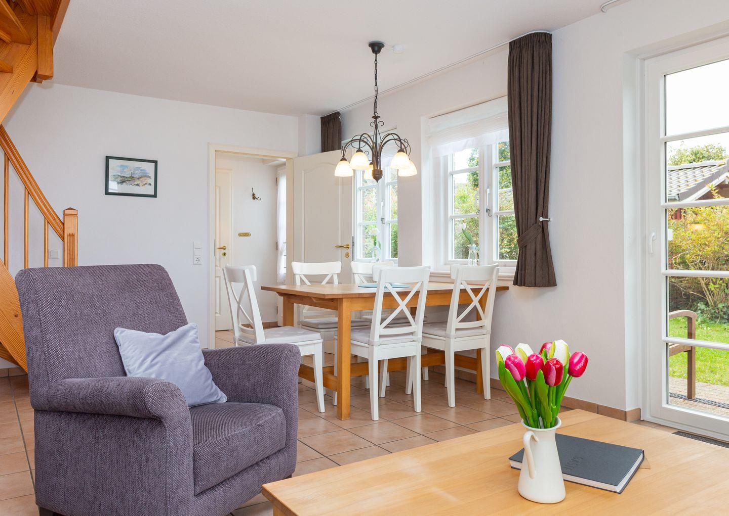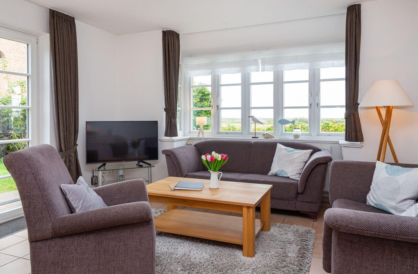 Die Ferienwohnung Seeschwalbe bietet über drei Ebenen Meerblick und direkten Zugang zur Norddorfer Natur und Strand.