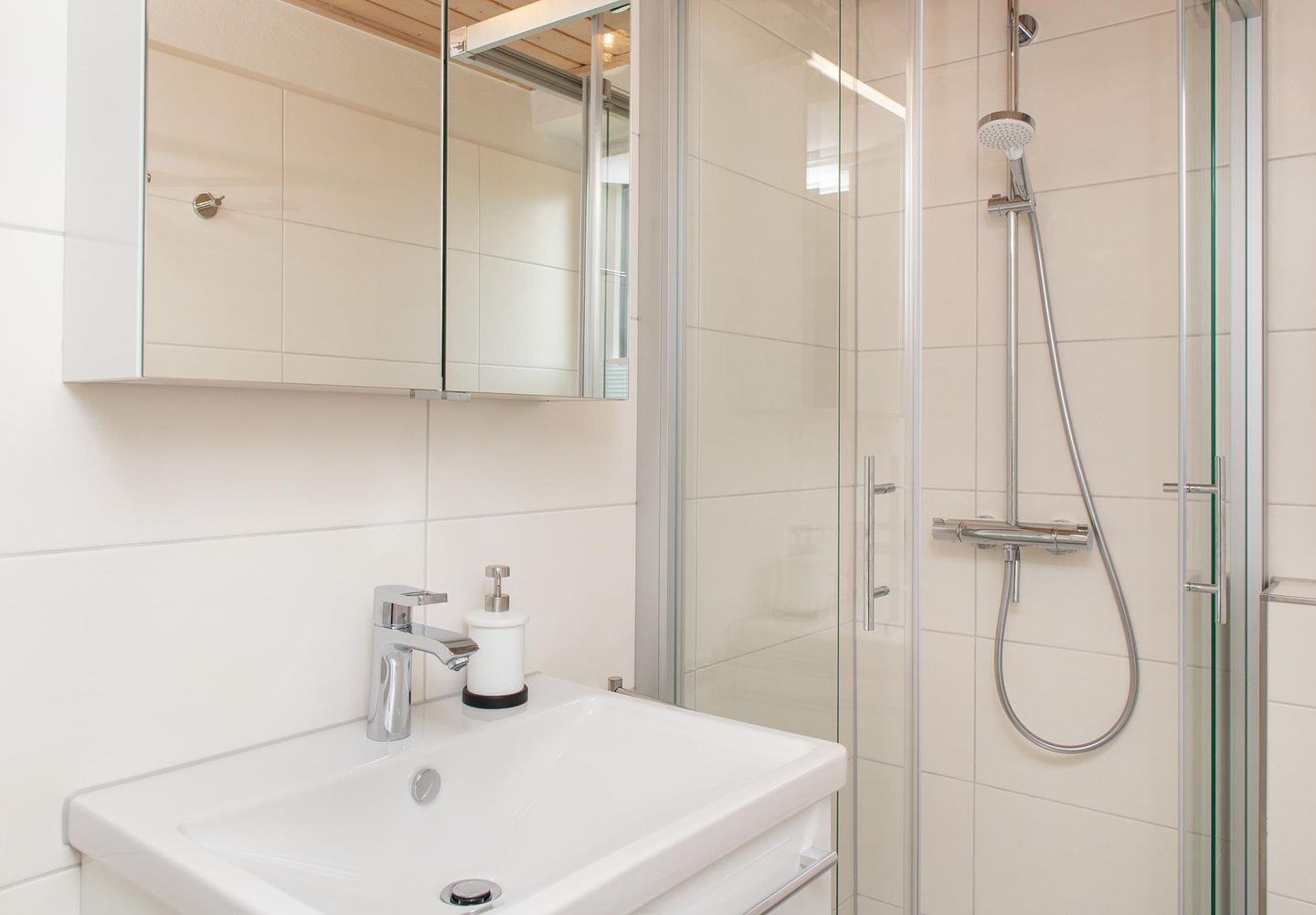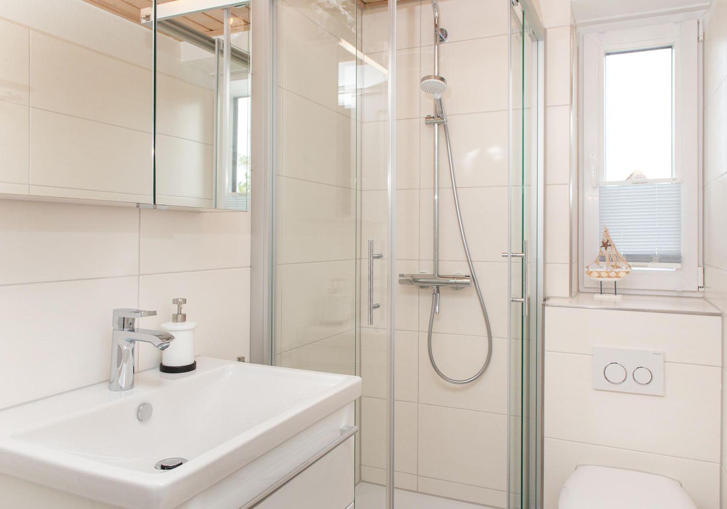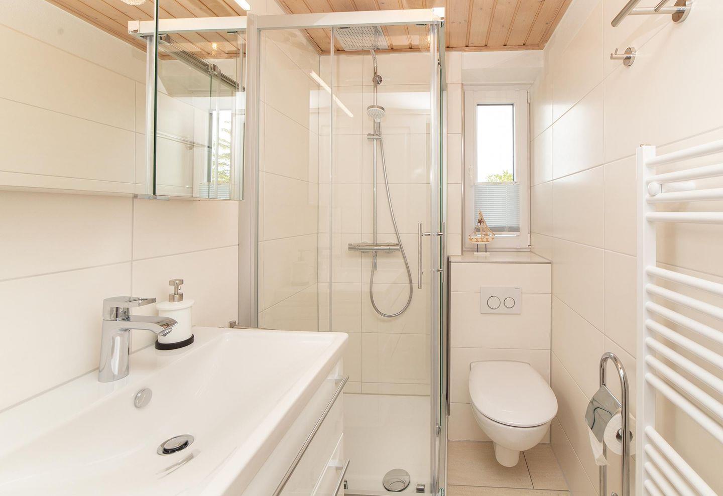 Das Bad mit Dusche und Tageslichtfenster wurde im Herbst / Winter 2019 renoviert.