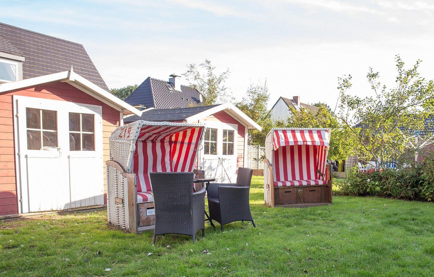Im Garten des Hauses können Sie im eigenen Strandkorb entspannen.