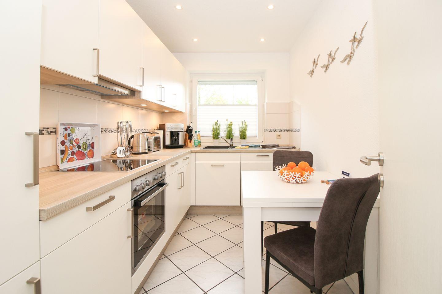 Das schmucke Ferienhaus wurde im Jahr 2019 vollständig modernisiert und renoviert. Das hochwertige L-Sofa lädt ein zu gemütliches Abendstunden ein. Der elektrische Kamin tut sein Übriges. Der große Essbereich ist ideal für die ganze Familie. Die separate Küche mit hochwertiger Küchenzeile bietet alles, was man im Urlaub benötigt. Der angrenzende Abstellraum bietet sehr viel Stauraum sowie einen separaten Gefrierschrank.