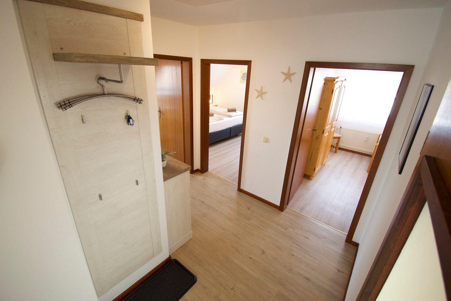 Von hier aus haben Sie Zugang zu allen Zimmern der Ferienwohnung. Ausreichend Ablageflächen bieten Platz für Ihre persönlichen Dinge und sorgen für Ordnung.