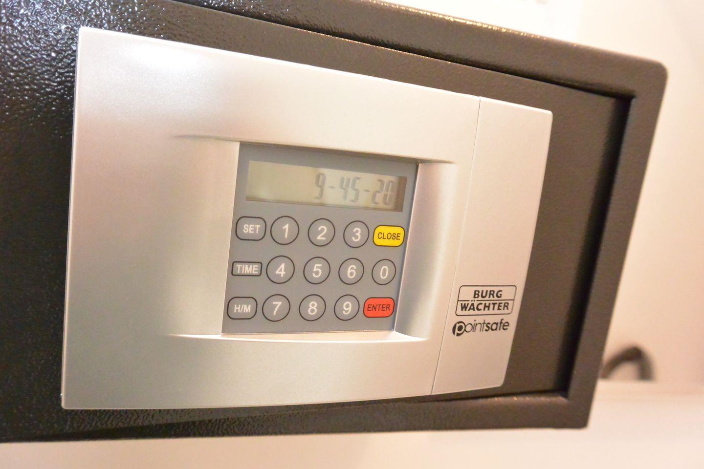 Der Innen-Abstellraum verfügt über eine eigene Waschmaschine, die Sie kostenfrei nutzen können. Zudem stehen Ihnen ein Safe, ein Wäscheständer mit Wäscheklammern, Bügeleisen und Bügelbrett, ein Schuhregal sowie ein Staubsauger zur Verfügung.
