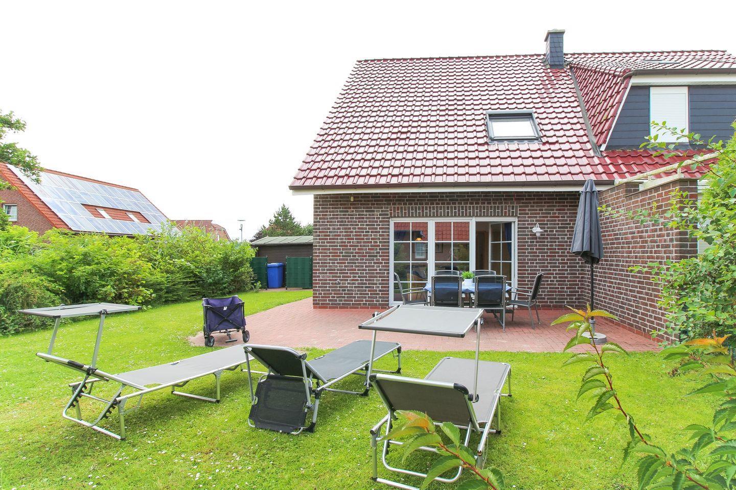Gemütliches Ferienhaus Itzendorfplate mit drei Schlafzimmern, Garten und WLAN in Norddeich für Familienurlaub.