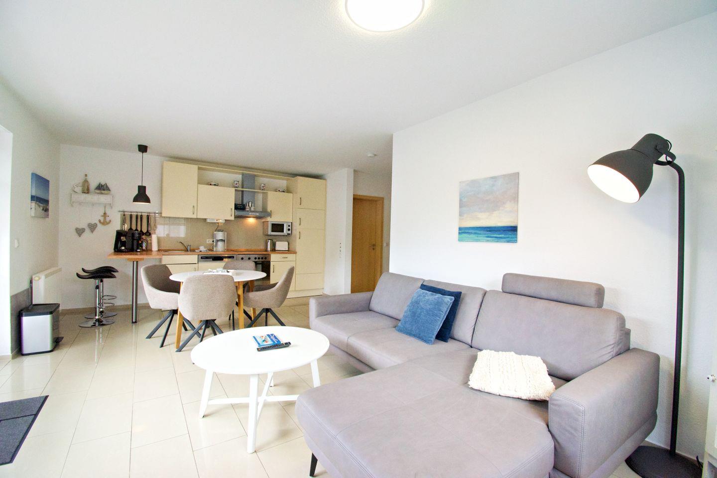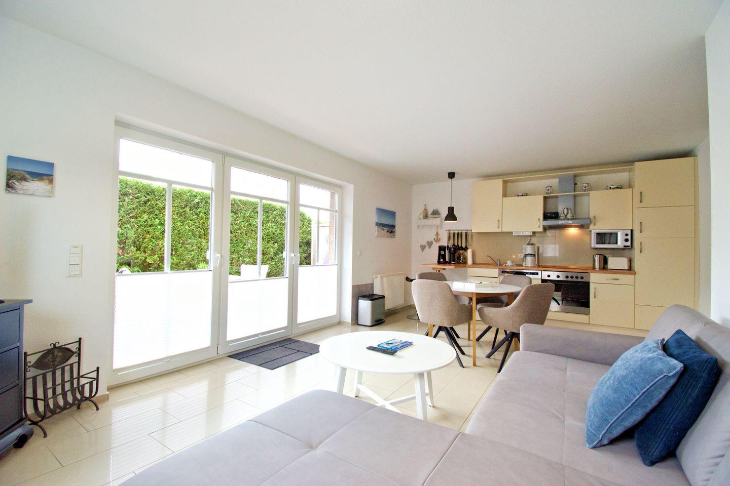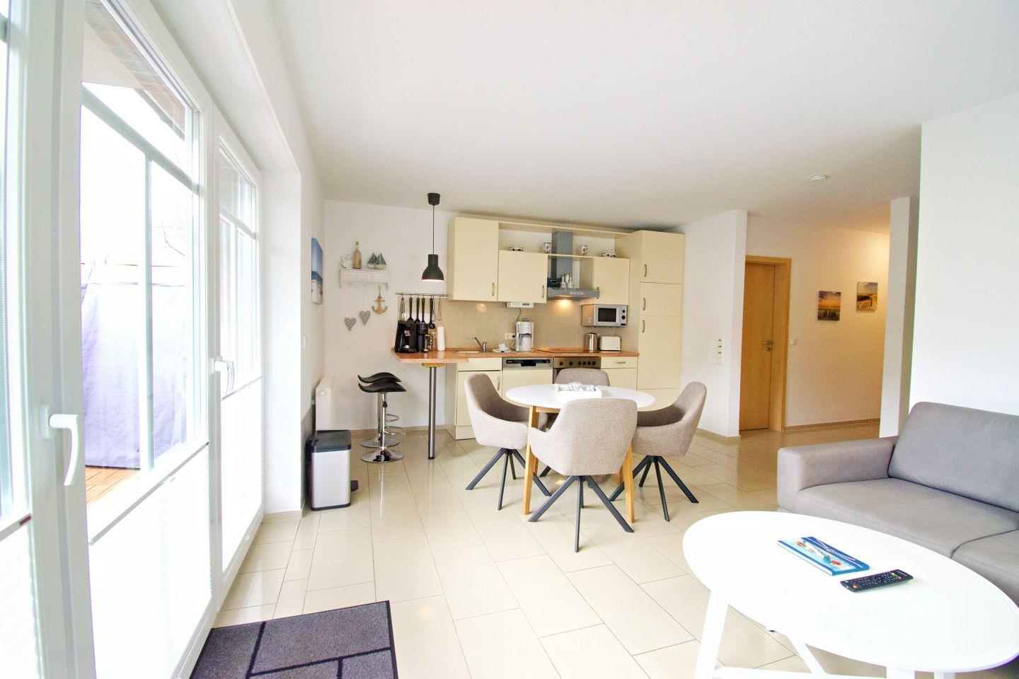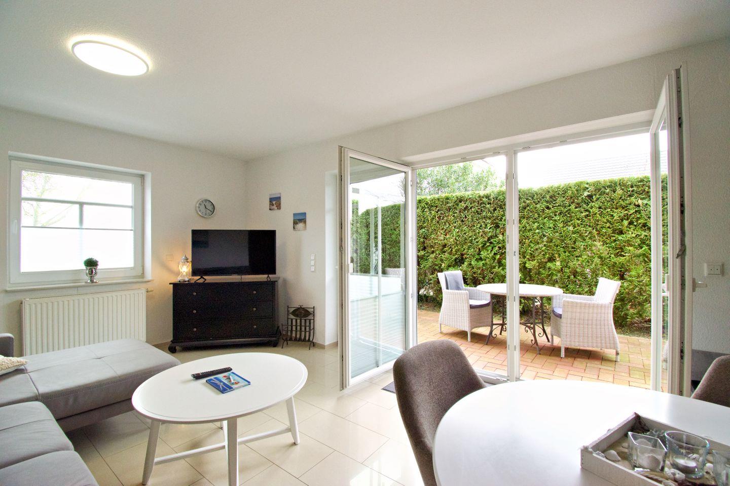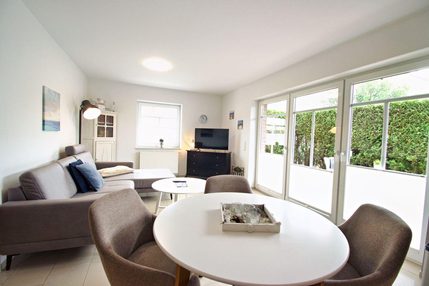 Moderne 64 m² Ferienwohnung "Ebbe" in Norden-Norddeich mit Terrasse, Gartenblick und Nähe zum Strand.