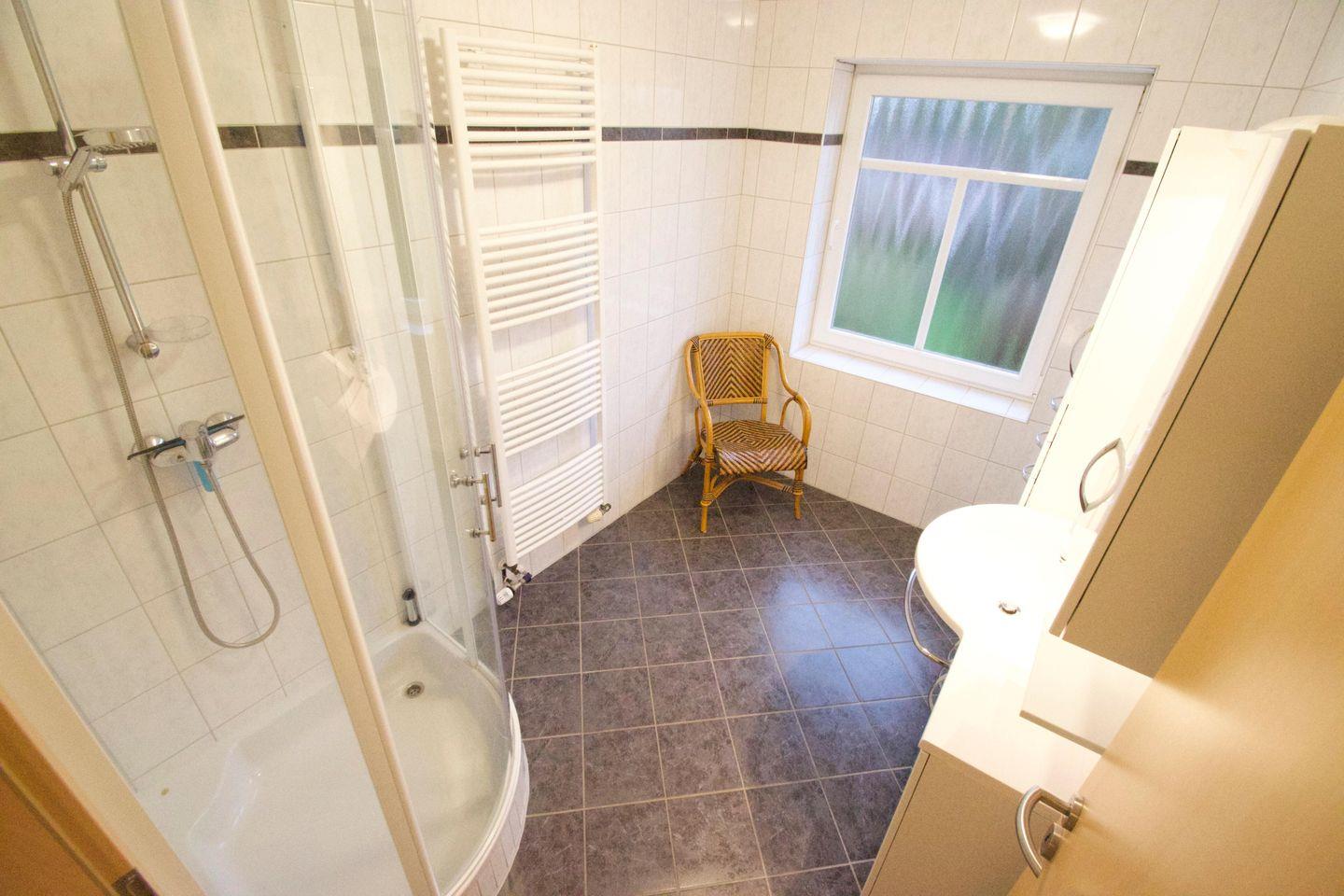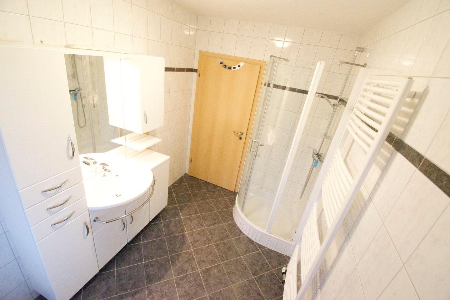 Das Badezimmer ist mit einer Dusche, einem Haartrockner und einem Handtuchheizkörper ausgestattet.