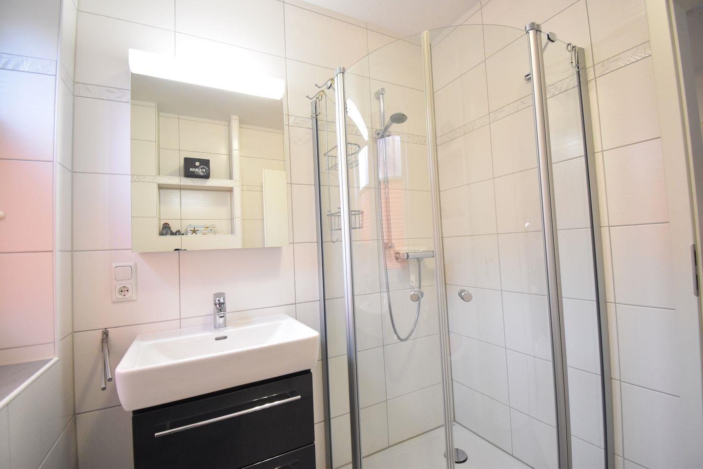 Ein weiteres Highlight der Wohnung ist die große Terrasse mit schönem Garten in Südwestlage, die zum entspannten Verweilen im Freien einlädt. Hier können Sie die frische Nordseeluft genießen oder es sich auf einer der Sonnenliegen bequem machen. Die Gartenmöbel sind ideal, um Mahlzeiten im Freien zu servieren. Ein Privatparkplatz direkt am Haus steht Ihnen ebenfalls zur Verfügung wie auch ein separater Fahrradraum mit eBike-Ladestation.
