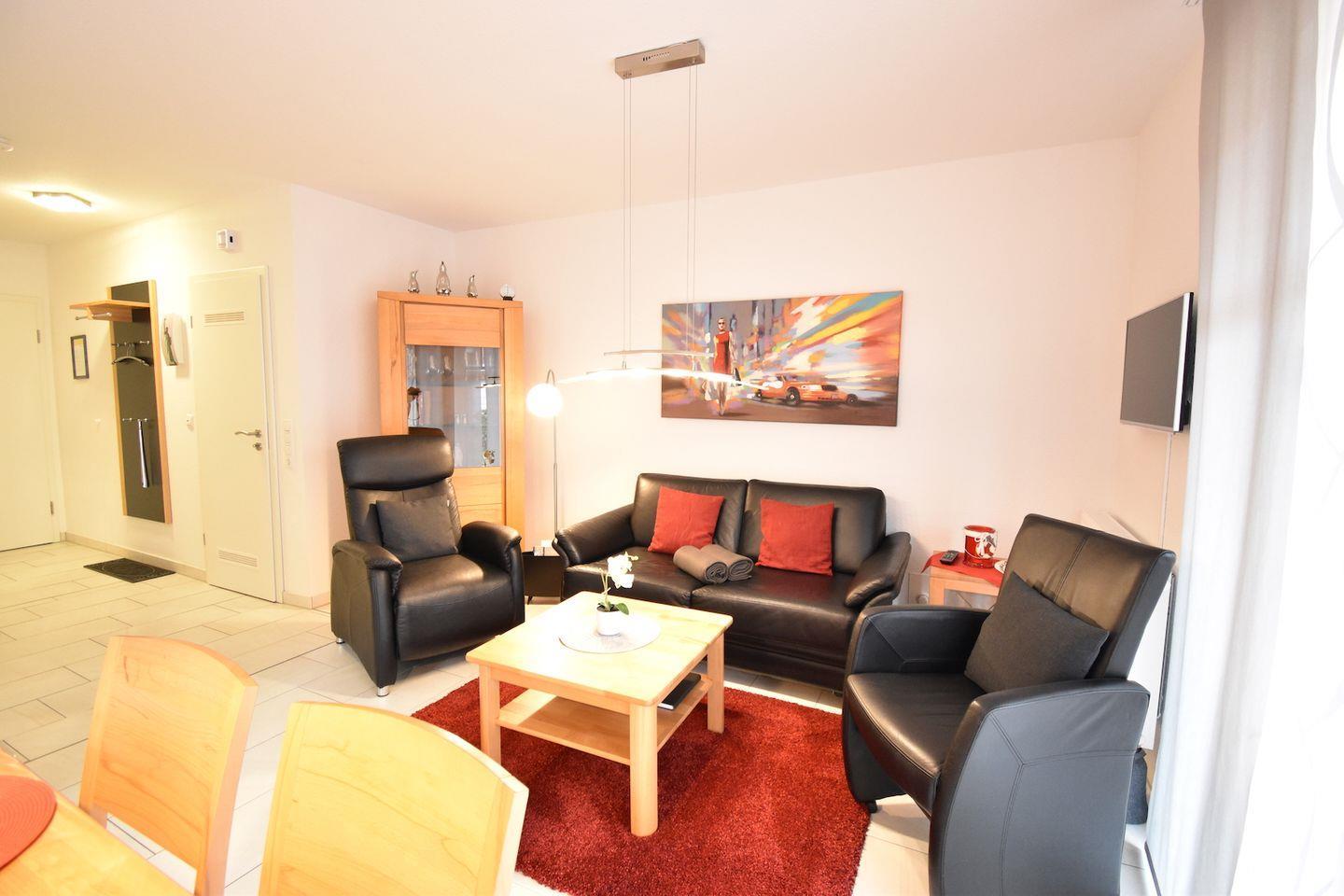 Moderne 4-Sterne-Ferienwohnung Pinguin mit großer Terrasse und Garten in Norddeich, nahe Sandstrand.