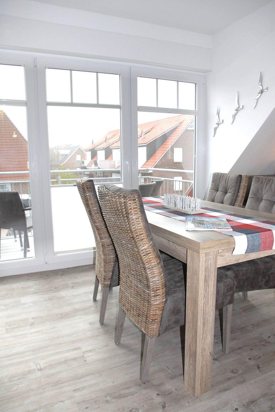 Exklusive Ferienwohnung Mien Dröm in Norddeich mit Balkon, WLAN und Pkw-Stellplatz, ideal für einen komfortablen Urlaub zu viert.