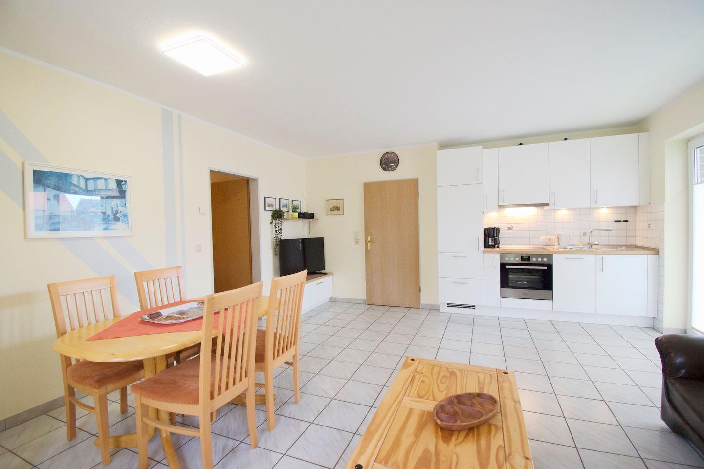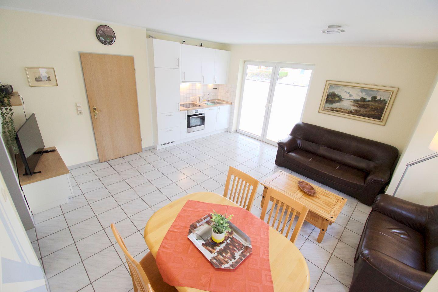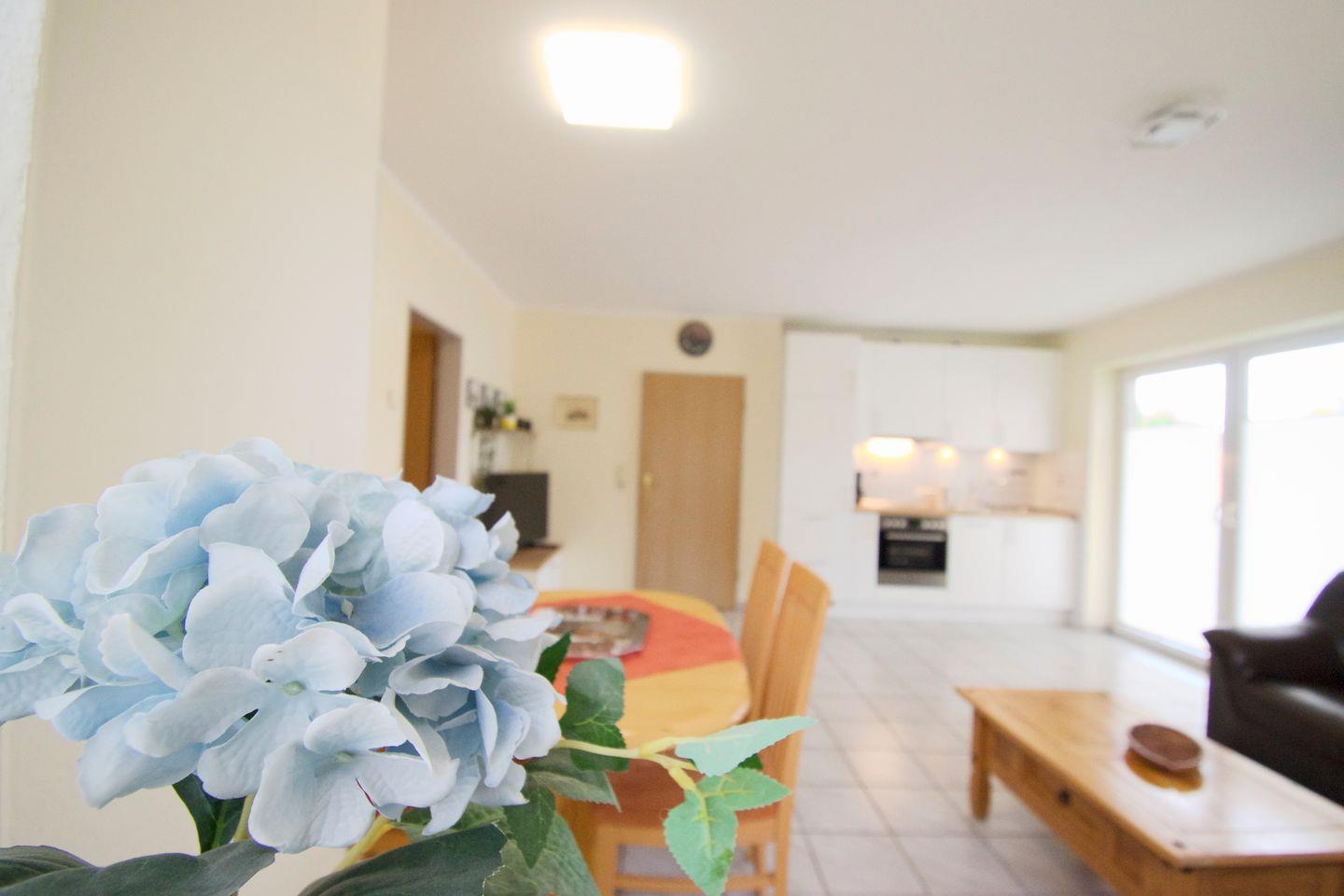Gemütliche 3-Zimmer-Ferienwohnung Regina I in zentraler Lage von Norddeich mit eigenem Parkplatz und großem Garten.