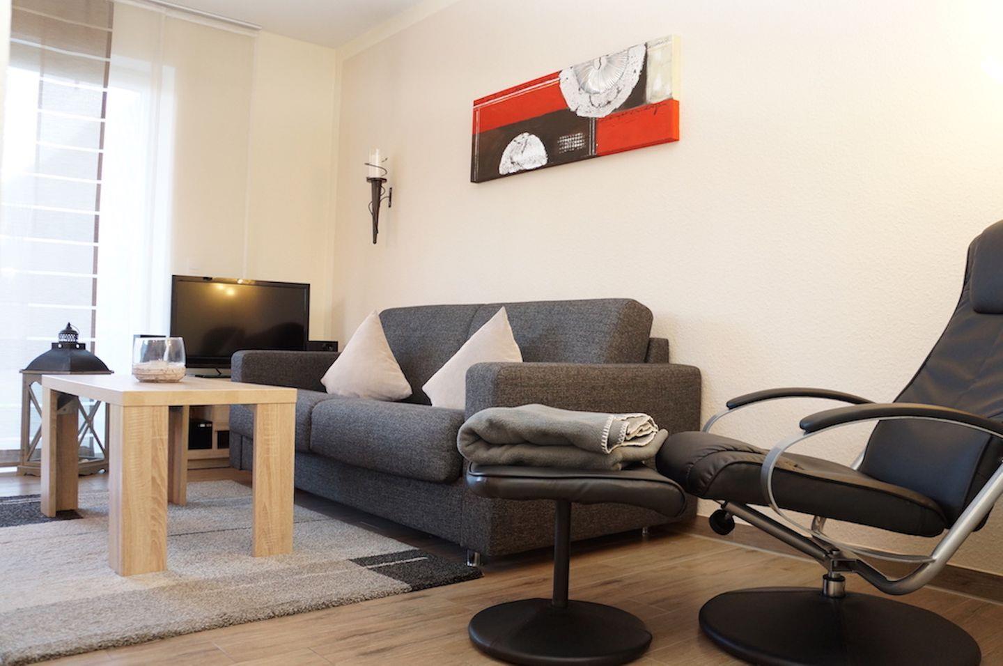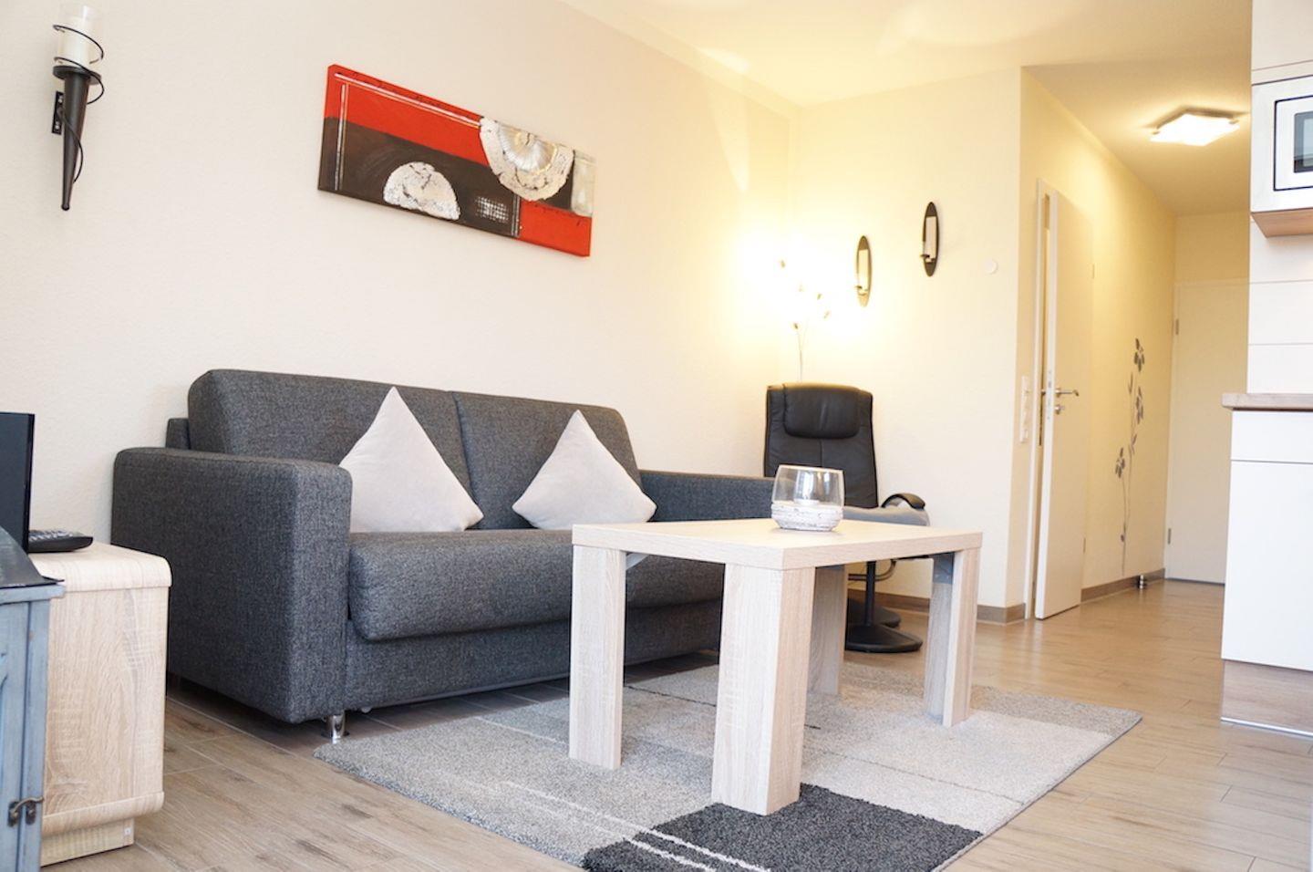 FeWo Nordseewelle, 3 Personen + Kind, 1 Schlafzimmer, 1 Wohnschlafzimmer, 50 qm, Haustiere erlaubt