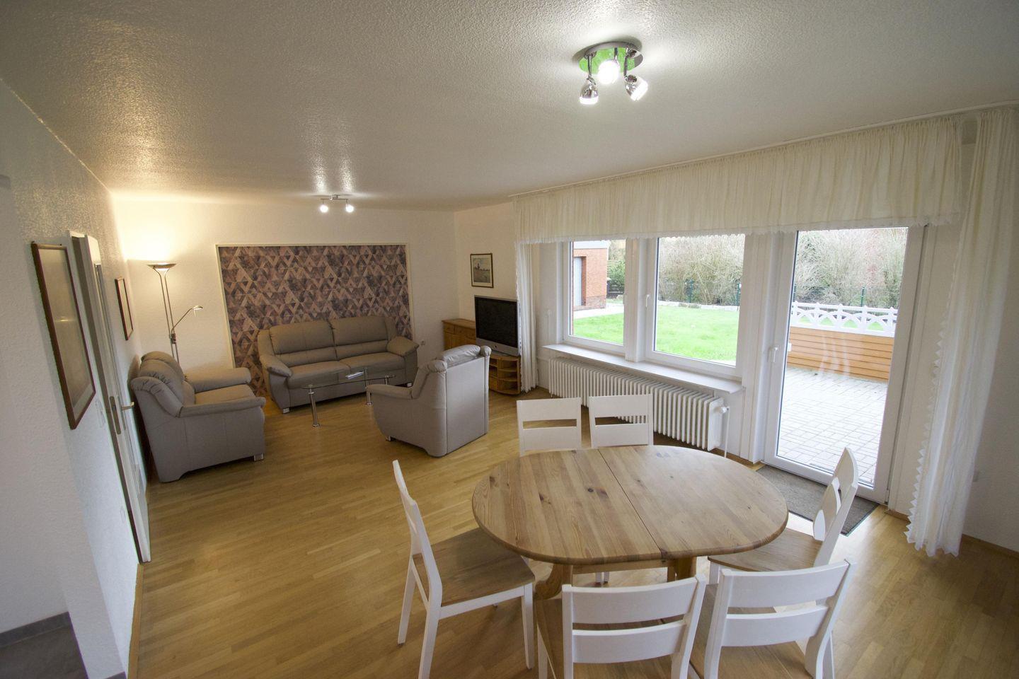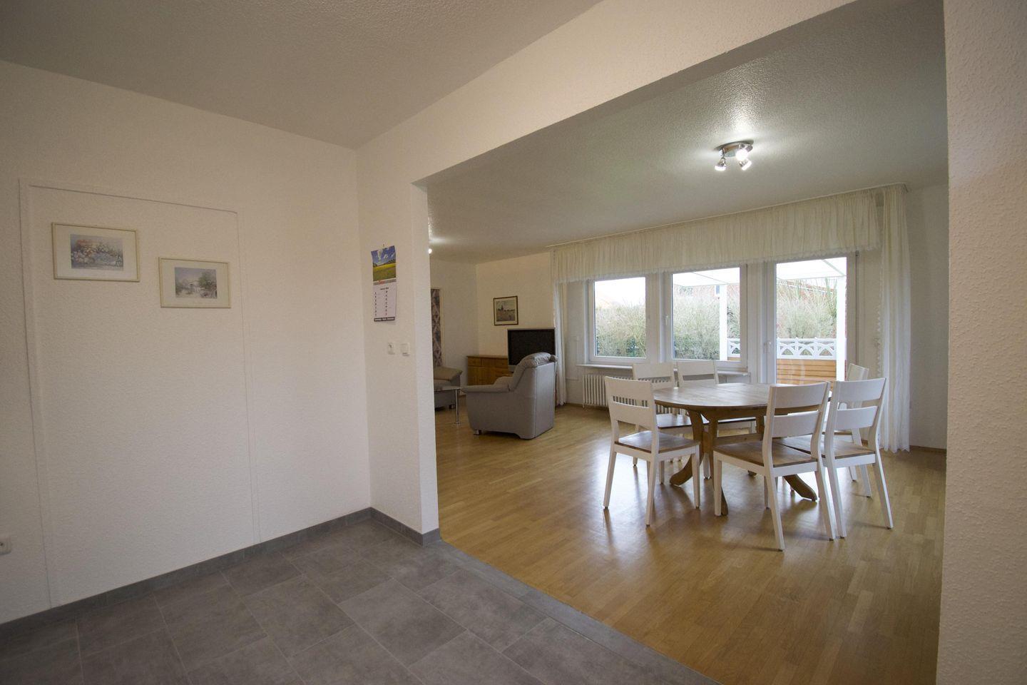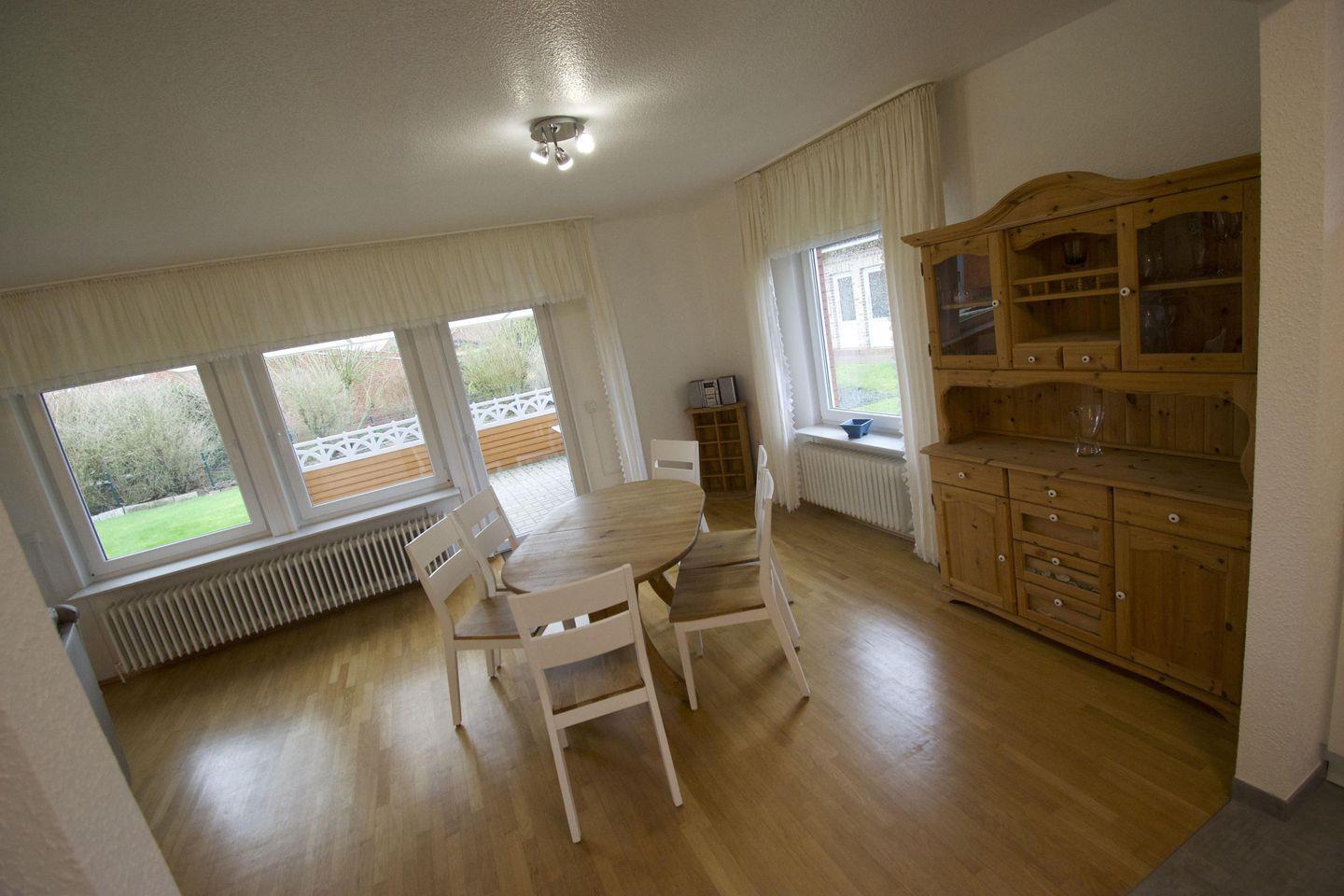 Das Ferienhaus zeichnet sich durch einen gepflegten Gartenbereich mit Terrasse aus, die mit Gartenmöbeln, Sonnenliegen, Sonnenschirm, Windschutz, Markise und genügend Sonnenschutz ausgestattet ist. Eine Liegewiese bietet zusätzlichen Raum zum Verweilen oder Spielen. In sonniger Umgebung können Sie die frische Nordseeluft genießen. Für Gäste, die mit Haustieren anreisen, sind bis zu zwei Tiere herzlich willkommen.