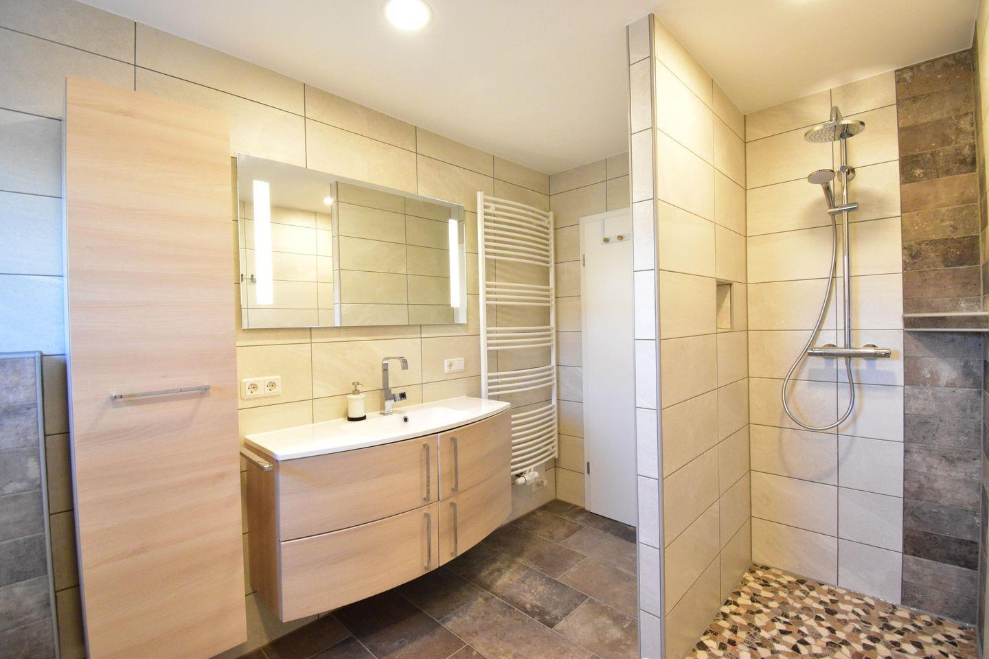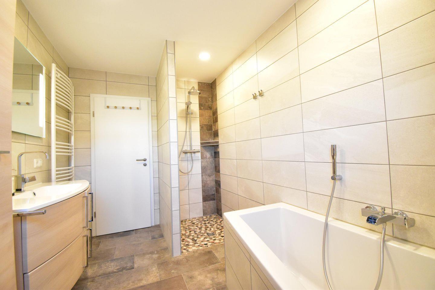 Das Erdgeschoss ist offen und großzügig gestaltet und umfasst eine separate Küche sowie einen angrenzenden Wohnbereich mit Kaminofen. Ergänzt wird das Erdgeschoss durch ein Gästebad, ein großes Badezimmer, eine Garderobe sowie eine großzügige Terrasse, die sowohl vom Wohnbereich als auch vom Schlafzimmer aus zugänglich ist.
