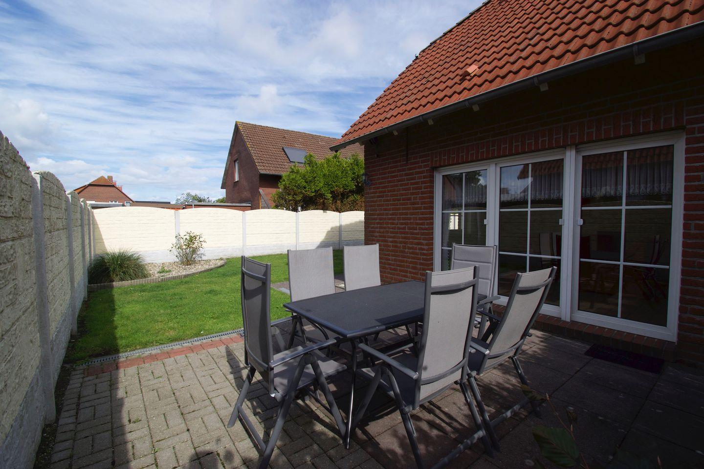 Gemütliches dreistöckiges Ferienhaus Flüthörn in Norddeich mit eingezäuntem Garten und Terrasse.