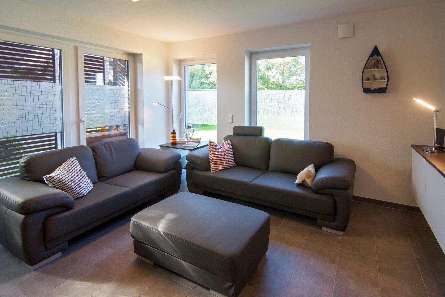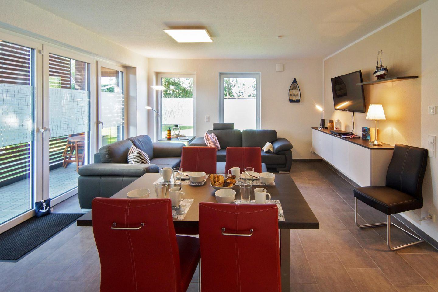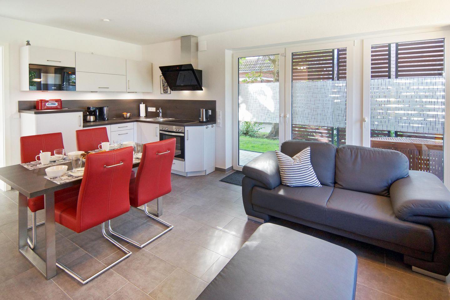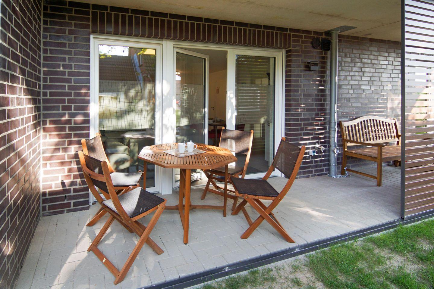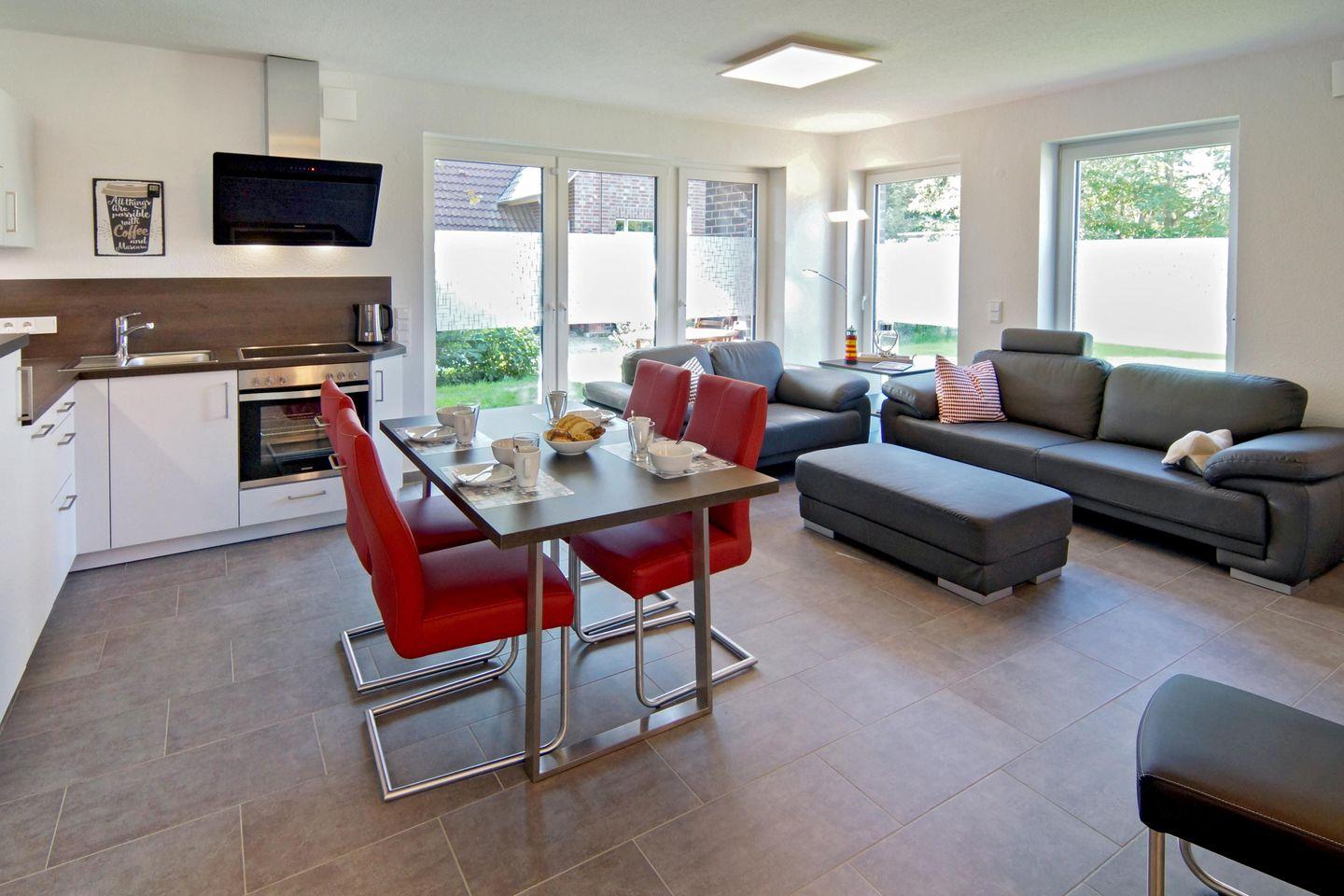 Moderne Ferienwohnung Vier Jahreszeiten in Norddeich mit Terrasse, Fußbodenheizung und Garten für bis zu vier Personen.
