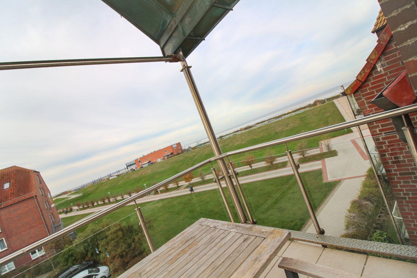 Ferienwohnung Amanda in Norddeich bietet Balkon mit traumhaftem Insel- und Meerblick für erholsame Tage an der Nordsee.