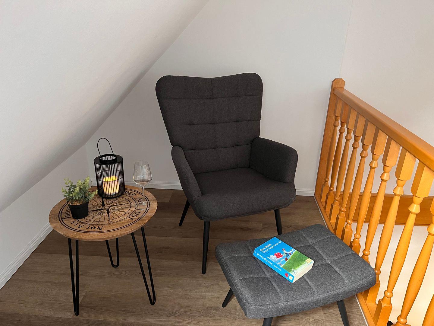 Die Ferienwohnung „Sonnendeck“ bietet auf 80?m² über zwei Etagen reichlich Platz für bis zu 5 Personen (davon 1 Kind) – ideal für Familien oder befreundete Paare. Der besondere Grundriss mit einem Wohn-Schlafbereich in der 1. Etage und einem separaten Schlafzimmer im Dachgeschoss schafft Rückzugsmöglichkeiten und Raum zur Entfaltung.